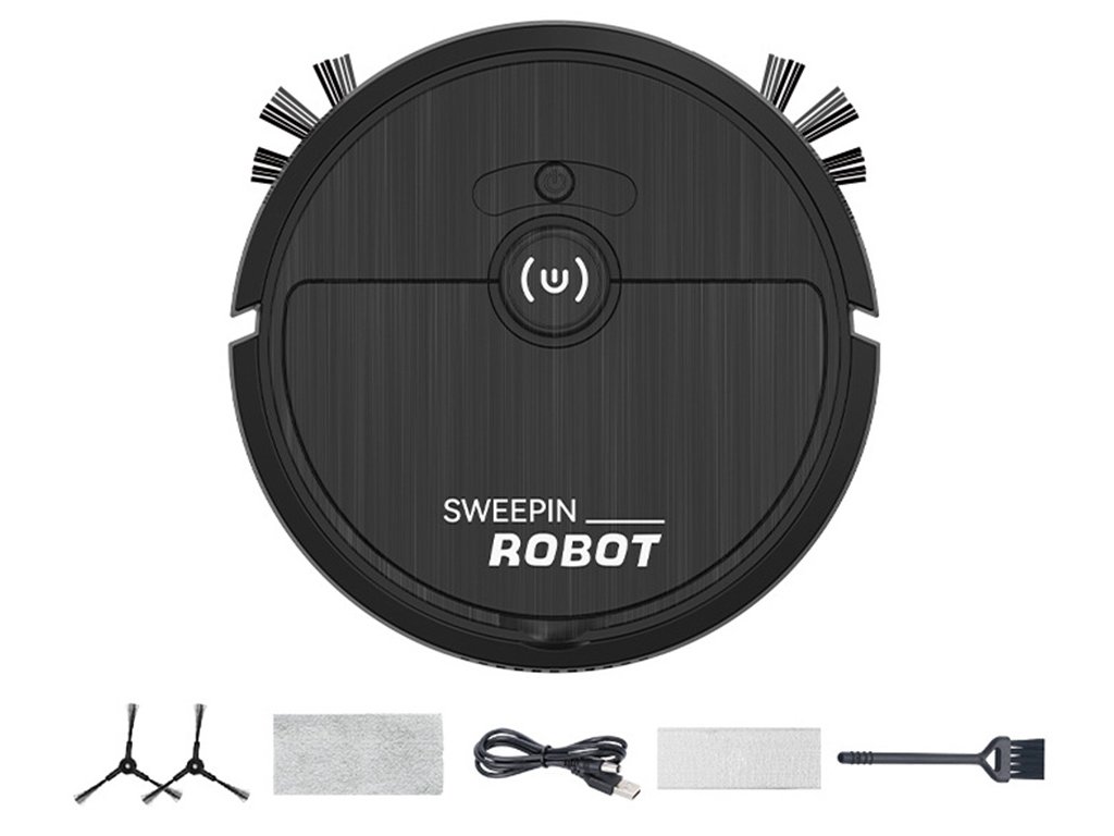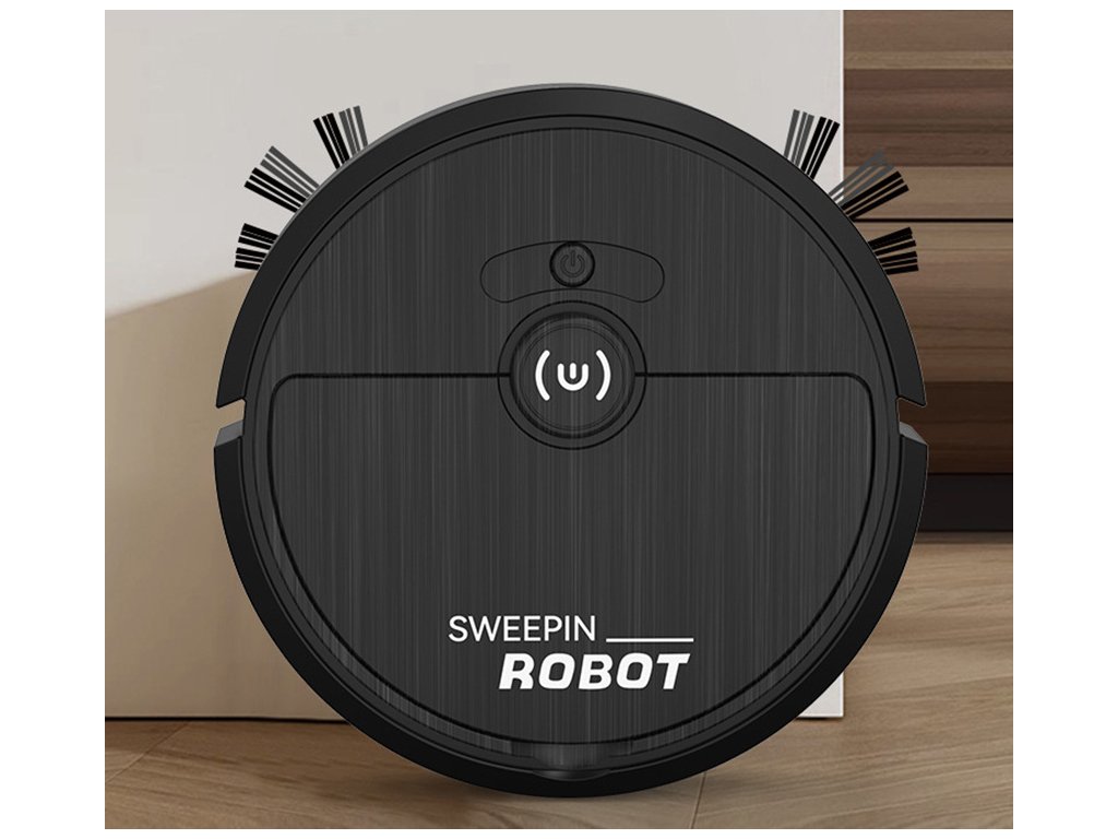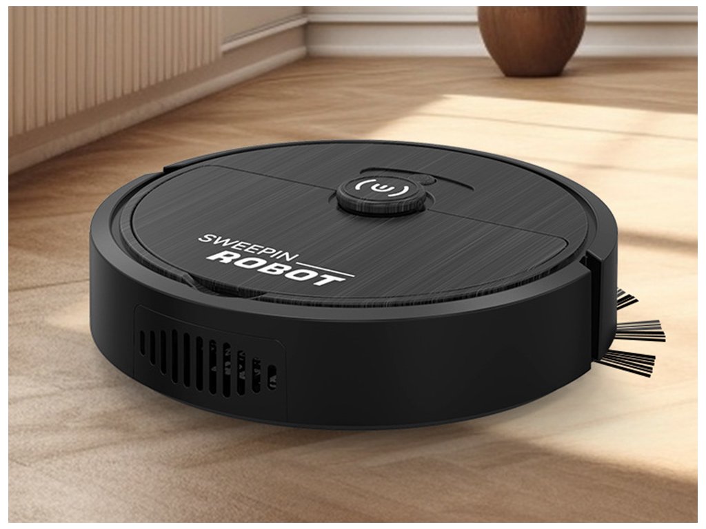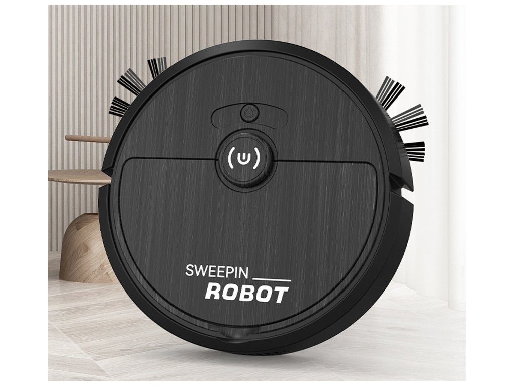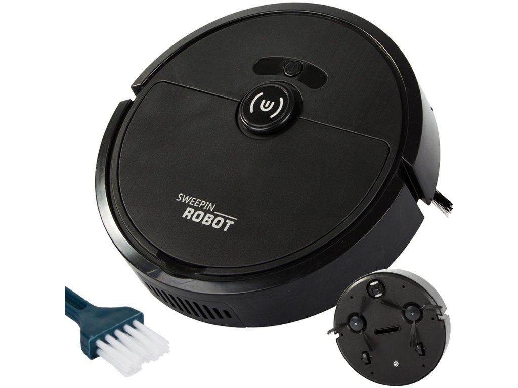 Akumulátorový čisticí robot s elektrickým kartáčem – černý vysavač pro snadný úklid