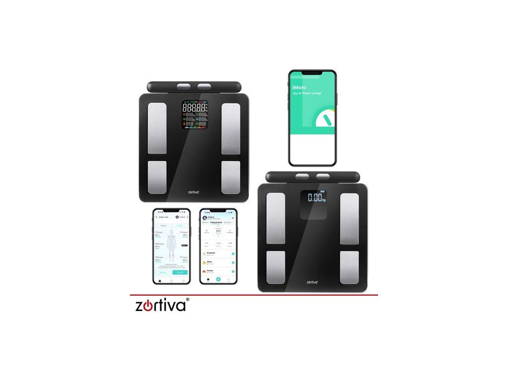 Moderní analytická koupelnová váha ZORTIVA Smart je inteligentní nástroj pro každodenní sledování zdraví a těla v souladu s doporučeními WHO . Díky 8 přesným elektrodám Analýza složení těla, měření BMI a synchronizace s mobilní aplikací iMoni vám poskytnou přehled o vašem pokroku v reálném čase . Jeho elegantní, prémiový skleněný design a vysoká přesnost měření z něj činí ideální volbu pro jednotlivce, kteří dbají na své zdraví.