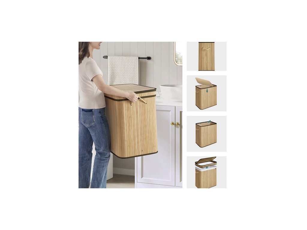 Tento dvoukomorový koš na prádlo Ruhhy 24269 je vyroben z kvalitního bambusu, který je oblíbený pro svůj luxusní vzhled a ekologické vlastnosti. Bambus dodává koši na prádlo přirozenou krásu, která se hodí do každé koupelny nebo ložnice. Jeho světlá barva a jemné linie dodávají interiéru svěží a přírodní atmosféru.