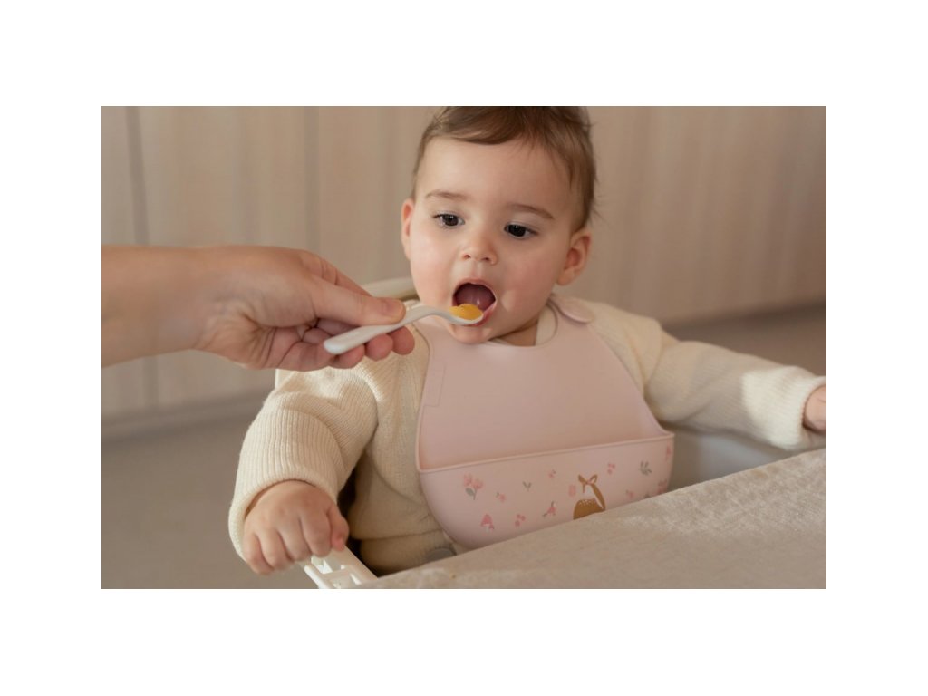 Bryndák z jemného, pružného silikonu s krásným potiskem je vybaven širokou kapsou pro zachycení drobečků i kapek. Dokonale ochrání oblečení dítěte již od prvních pokusů o samostatné stolování. Zapínání za krkem umožňuje snadno upravit velikost kolem krku. Bryndák je součástí designové kolekce hraček a doplňků pro děti Little Dutch Fairy Garden, inspirované životem na zahradě. Rozměry: 30 x 21 x 3,6 cm Složení: silikon Bryndák je omyvatelný a je možné jej mýt i v myčce.