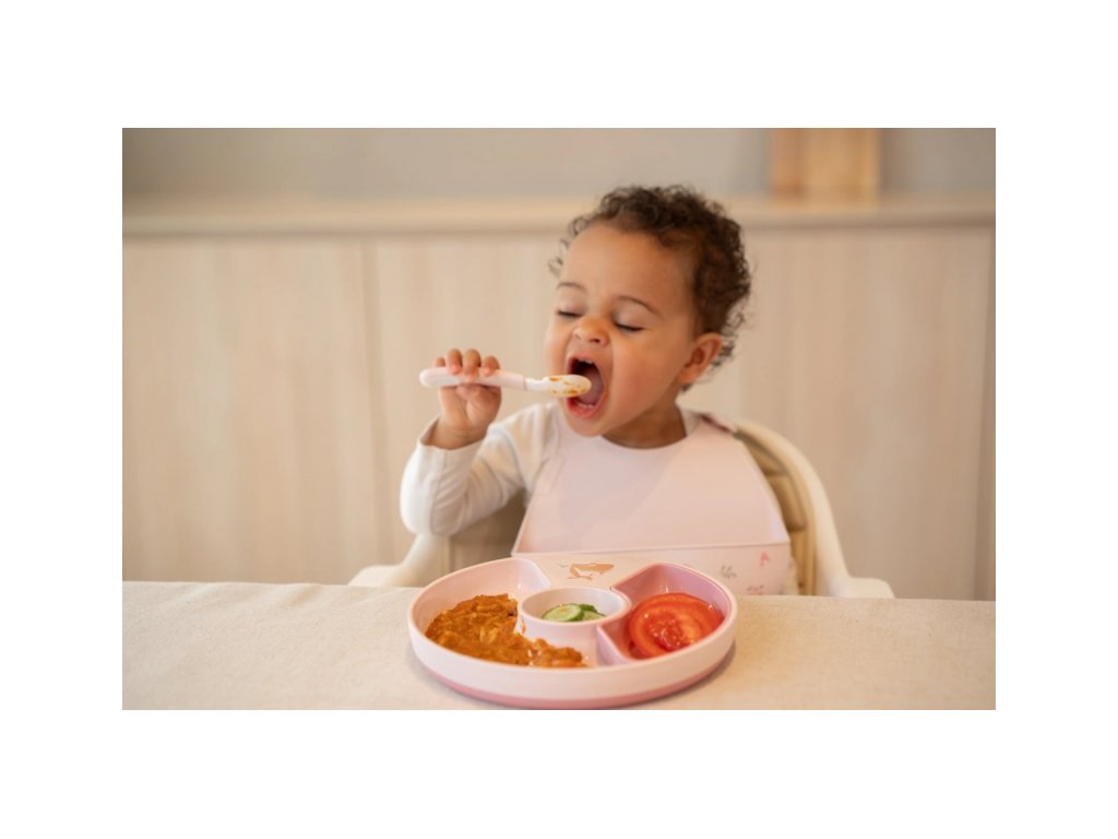 Sada talíře, misky, kelímku a lžičky z vysoce kvalitního silikonu je ideální pro první samostatné krmení, s přísavkou pro uchycení ke stolu. Je odolná vůči teplotám, vhodná do...