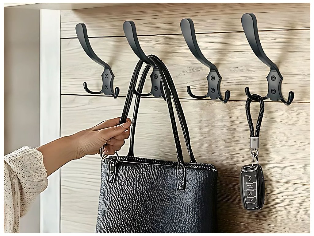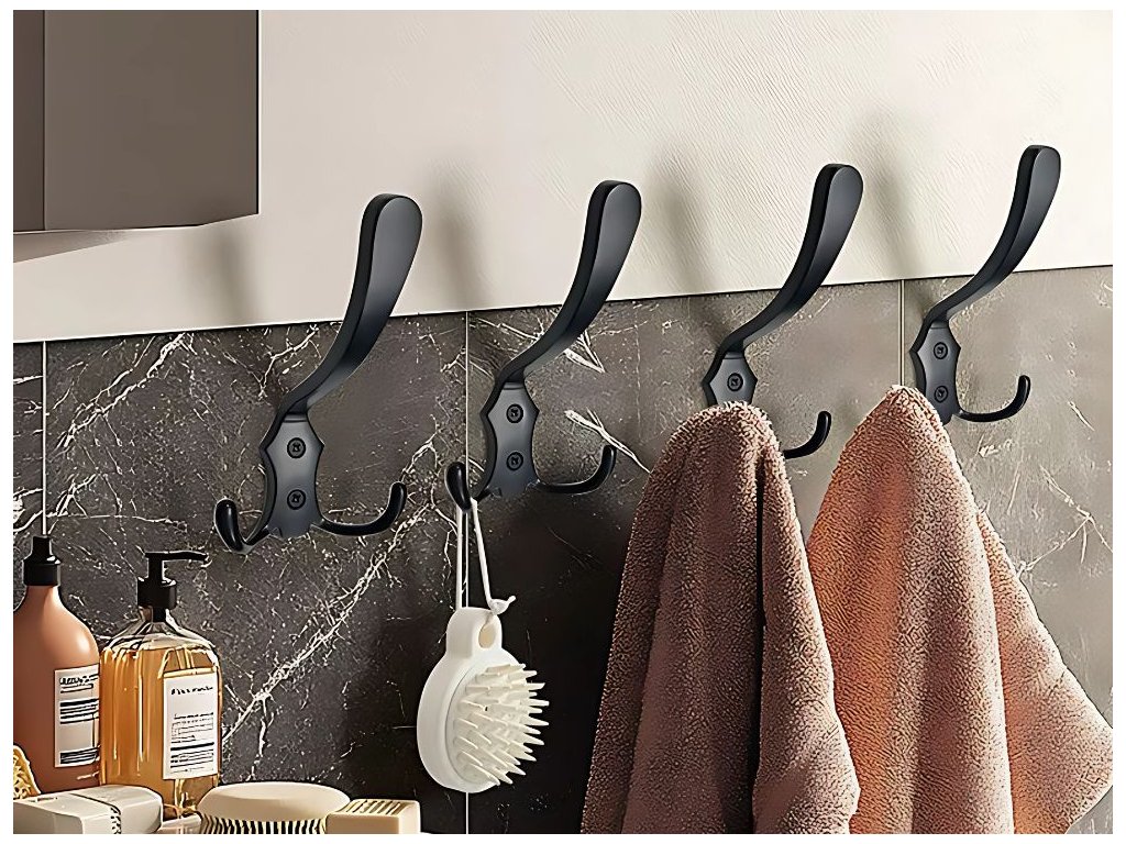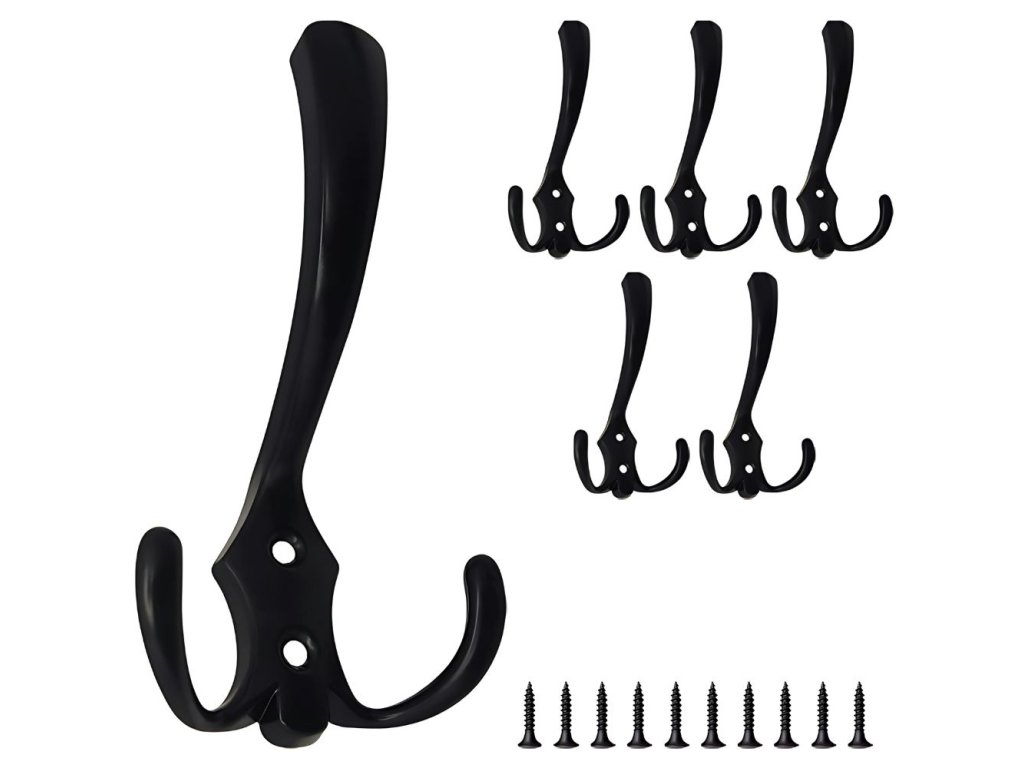 Tato sada 5 robustních nástěnných háčků je ideálním řešením pro organizaci prostoru v předsíni, koupelně, kuchyni, garáži nebo šatníku. Každý věšák má tři háčky, takže na něj lze zavěsit několik kusů oblečení, ručníků, batohů nebo klíčů najednou. Díky minimalistické černé barvě věšáky dokonale ladí s moderním interiérem a zároveň jsou velmi praktické a funkční pro každodenní použití.