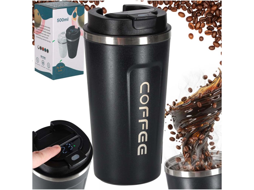 Tento hrnek napití je vyroben z vysoce kvalitnínerezové oceli a je ideální do práce, do auta i na každodenní vycházky. Díkyobjemu 500ml je praktický apohodlný na používání. Jedná se o hrnek na kávu a čaj, který kombinuje elegantní design s funkčním řešenímdigitálního měření teploty.
