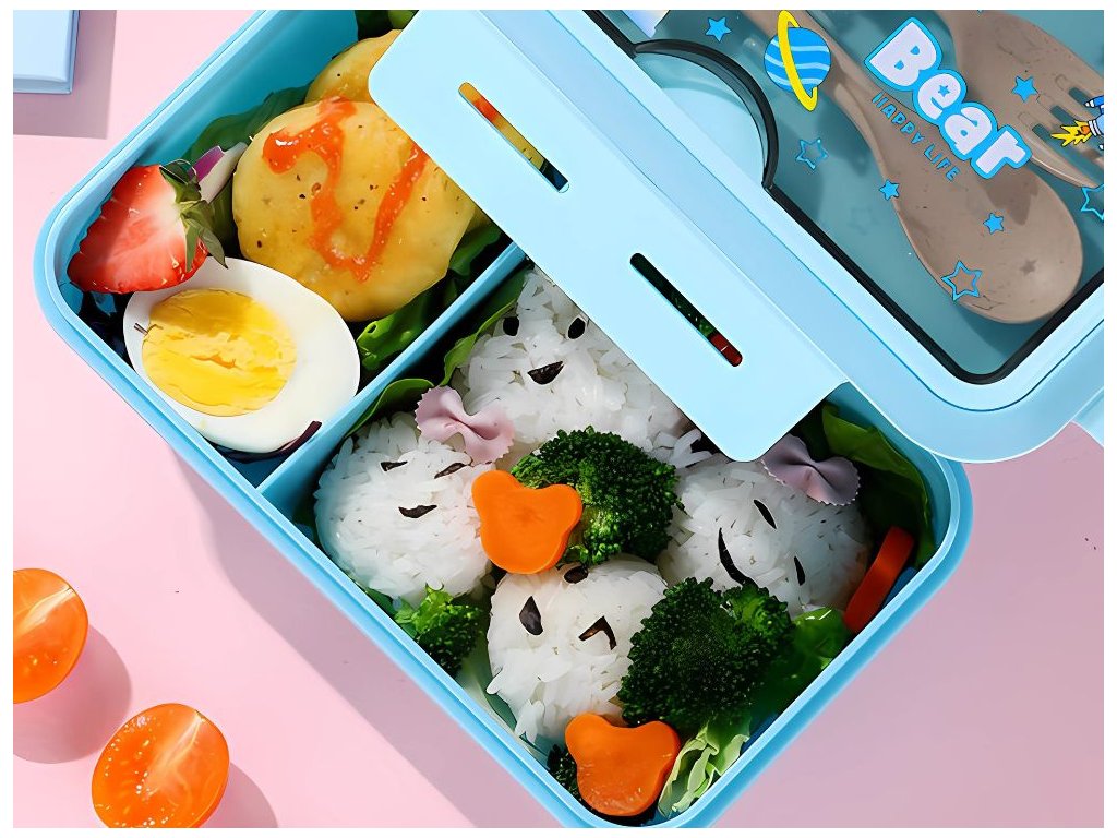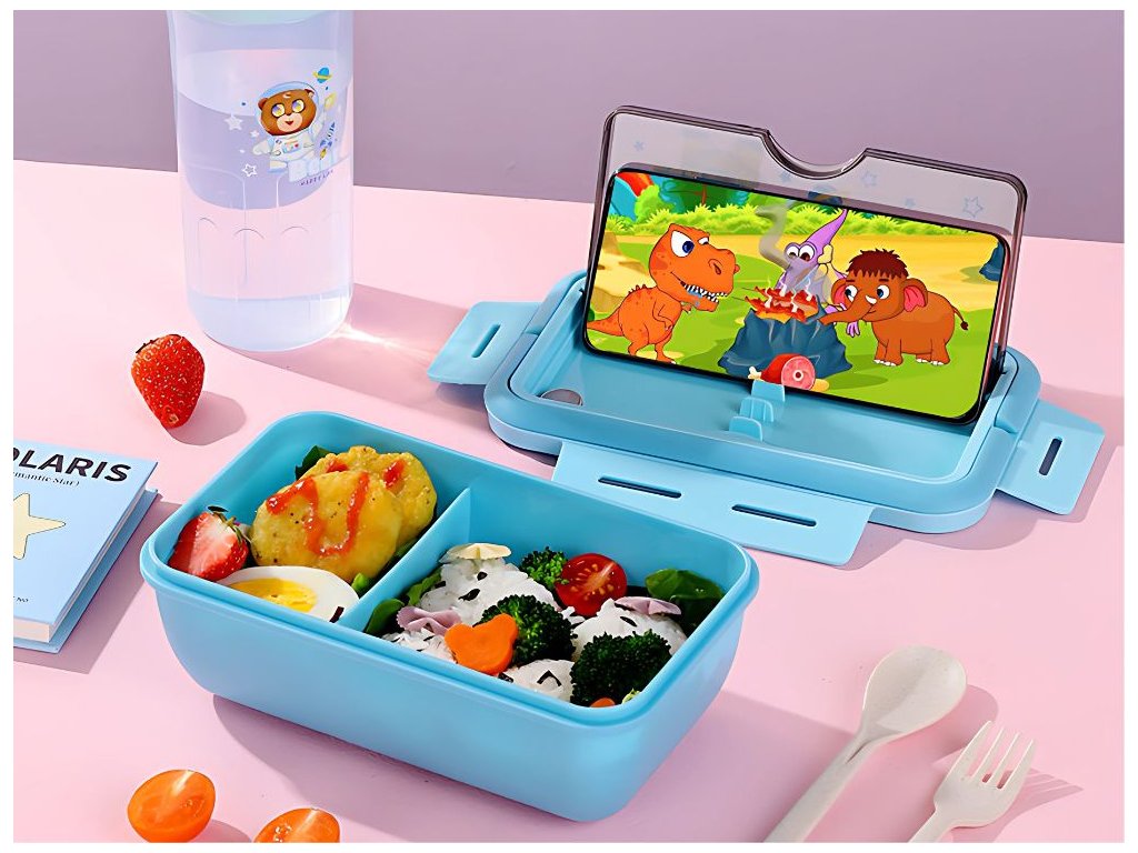 Praktický svačinový box: Pevný a kompaktní design chrání svačinu před poškozením a zachovává čerstvost.