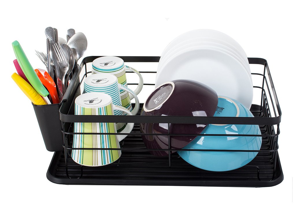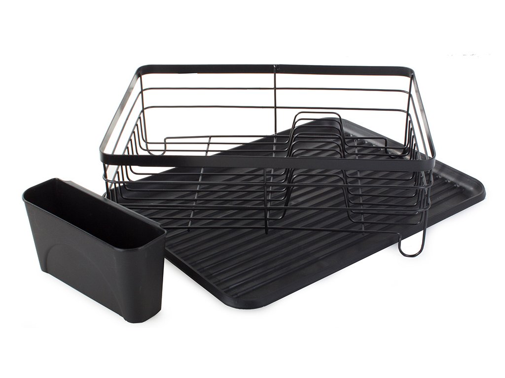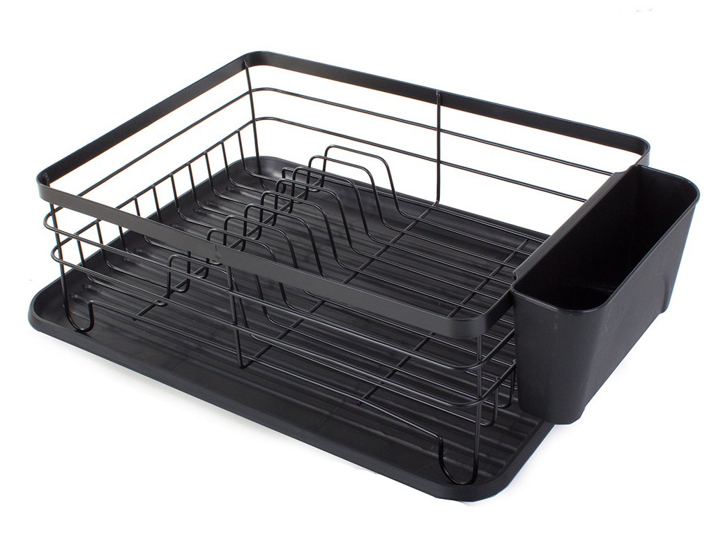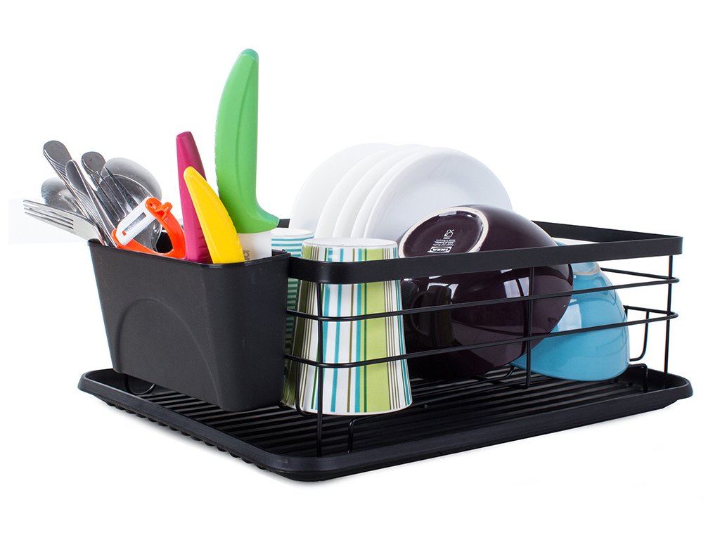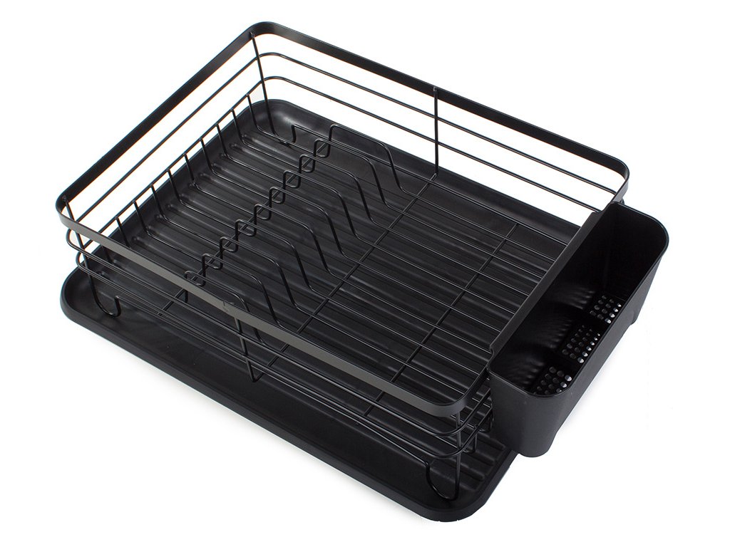 Kuchyňský odkapávač je vyroben z vysoce kvalitního práškově lakovaného kovu, což zajišťuje jeho odolnost vůči poškození a vlivům vlhkosti, které vznikají při ukládání mokrého nádobí.