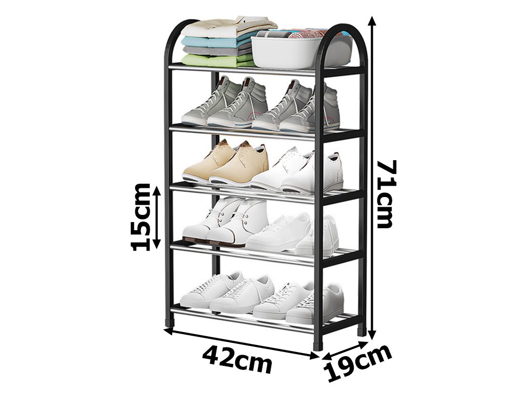 5 úrovní velký skříňový regál Představujeme elegantní a funkční botník, který se jistě stane nepostradatelným prvkem vašeho interiéru. Regál na boty má pět úrovní a pojme až 10 párů bot, což z něj činí ideální volbu jak do malých bytů, tak do velkých domácností. Jeho moderní design dokonale zapadne do jakéhokoli stylu interiéru a dodá mu nejen funkčnost, ale také estetický vzhled. Víceúrovňový design - Regál má 5 úrovní, do kterých můžete pohodlně uložit své oblíbené páry bot. - Každá úroveň je prostorná, což vám umožní umístit sportovní i elegantní obuv.Technické specifikace