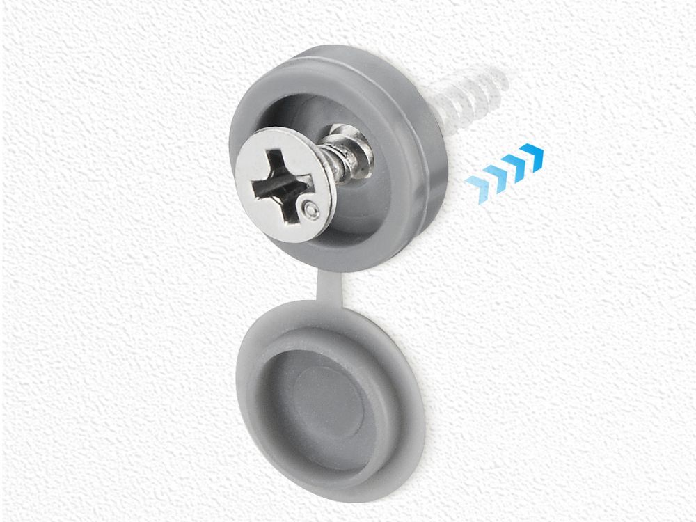 Kryty umožňují rychle a trvale zakrýt viditelné šrouby a dodávají povrchu jednotný a upravený vzhled. Šedá barva se dobře hodí k moderním i klasickým nábytkům, deskám a dokončovacím prvkům.