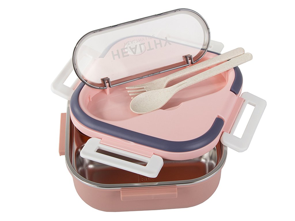 Lunchbox s průhledným víčkem a příbor 1000ml - růžový
