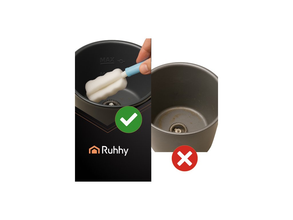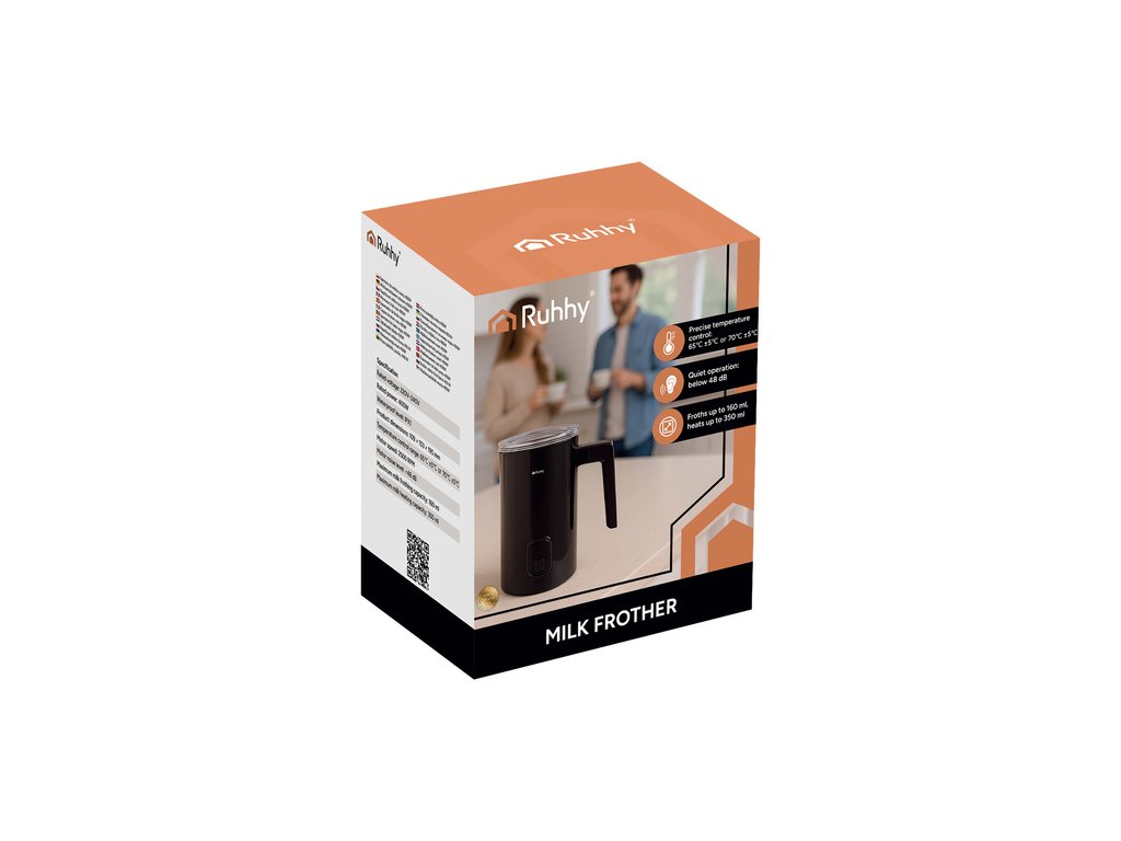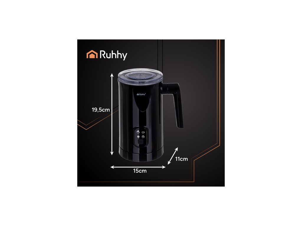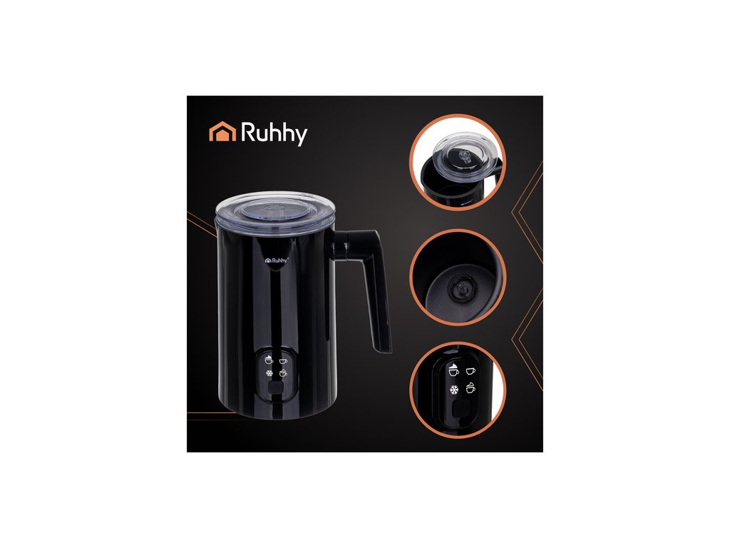 - Napěňovač mléka RUHHY je elegantní a funkční zařízení, které vám umožní připravit hustou, krémovou pěnu kavárenské kvality během několika sekund . Díky dvěma režimům ohřevu (65 °C a 75 °C) a objemu 160 ml pro napěnění a 350 ml pro ohřev je ideální pro cappuccino, latte a horkou čokoládu . Jeho nepřilnavý povrch, jednoduché ovládání jedním tlačítkem a otočná základna o 360° zajišťují pohodlné používání a snadné čištění.