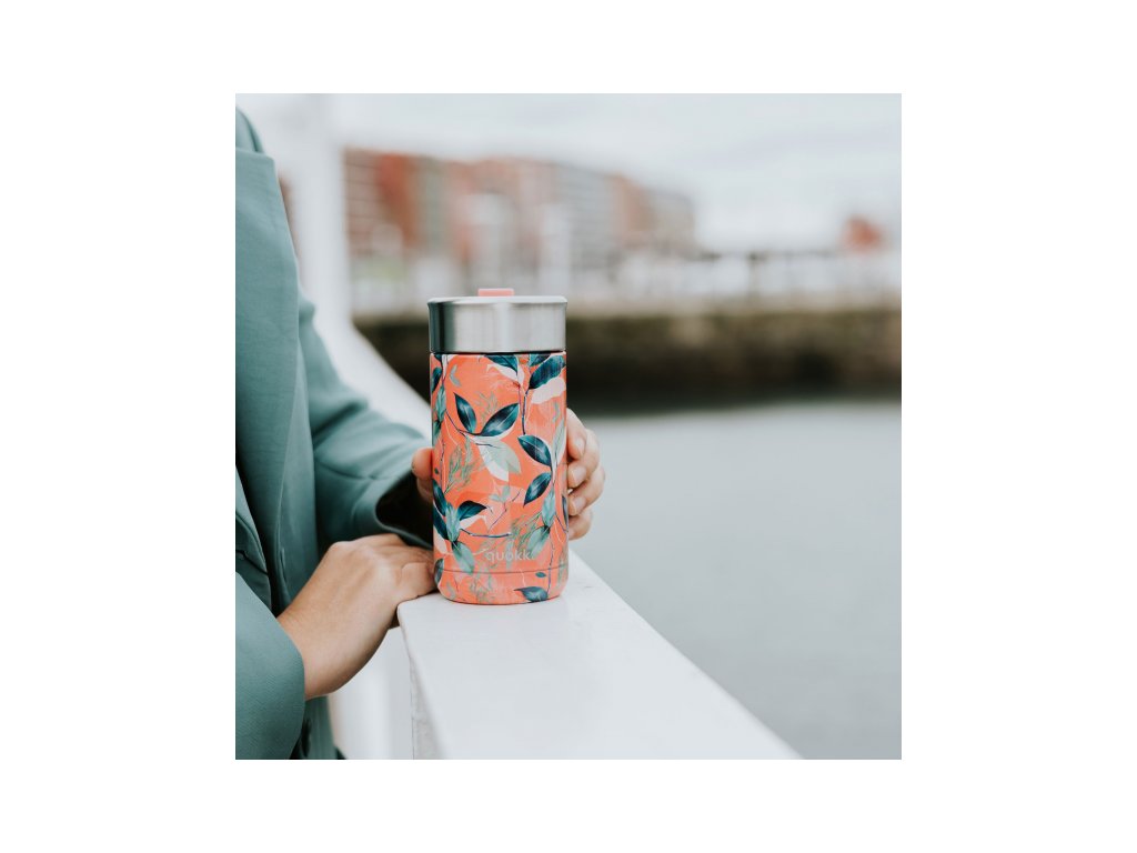 Termohrnek Quokka Boost z vysoce kvalitní dvoustěnné oceli se spolehlivým, 100% těsnicím uzávěrem udrží váš nápoj dle potřeby teplý či studený. Termohrnek udrží teplotu studeného nápoje s ledem až 24 hodin, studeného nápoje až 10 hodin a teplého nápoje až 4 hodiny. Součástí termohrnku je vyjímatelné sítko, vhodné např. na sypaný čaj. Široké hrdlo umožňuje vložení kostek ledu. Víčko se zaklapávacím uzávěrem umožňuje snadné pití přímo z hrnku. Objem: 400 ml Rozměry: 167 x 74 mm Nerezový materiál neabsorbuje pachy a neobsahuje BPA. Termohrnek není vhodný do myčky ani mikrovlnné trouby.