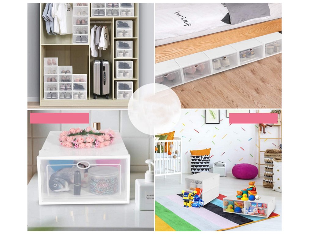 Praktický modulární box na boty je ideálním řešením pro úhledné a estetické skladování obuvi. Díky průhlednému otevíracímu víku v přední části můžete snadno vidět obsah boxu, aniž byste museli otevírat celou hromadu. Skvěle se hodí do šatny, skříně, chodby nebo pod postel – udržuje pořádek a chrání boty před prachem a vlhkostí.