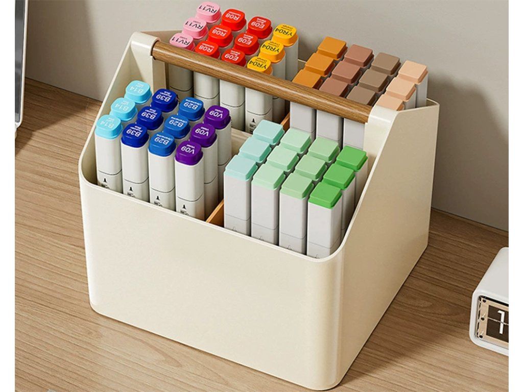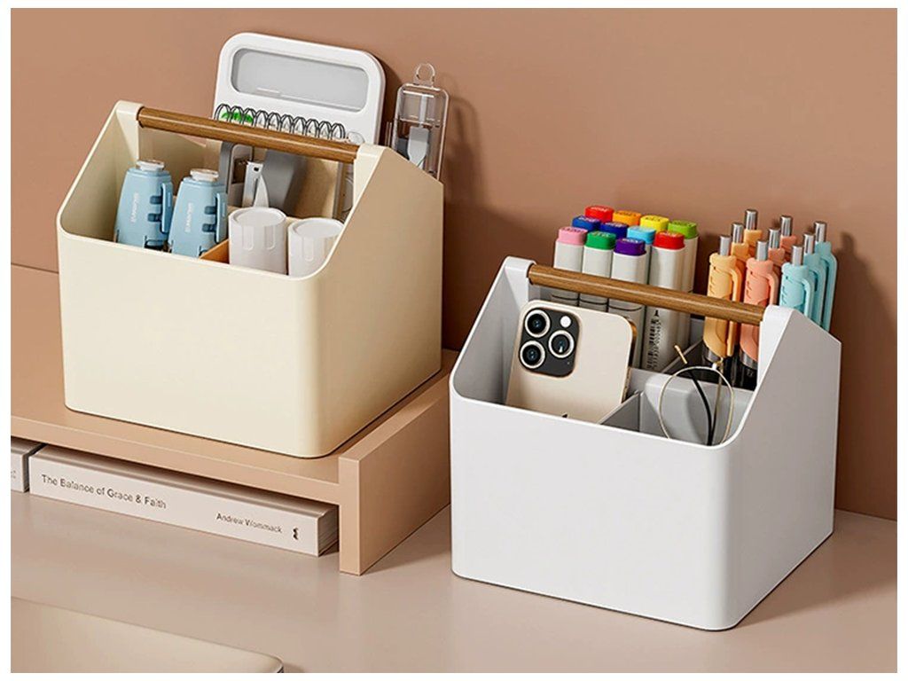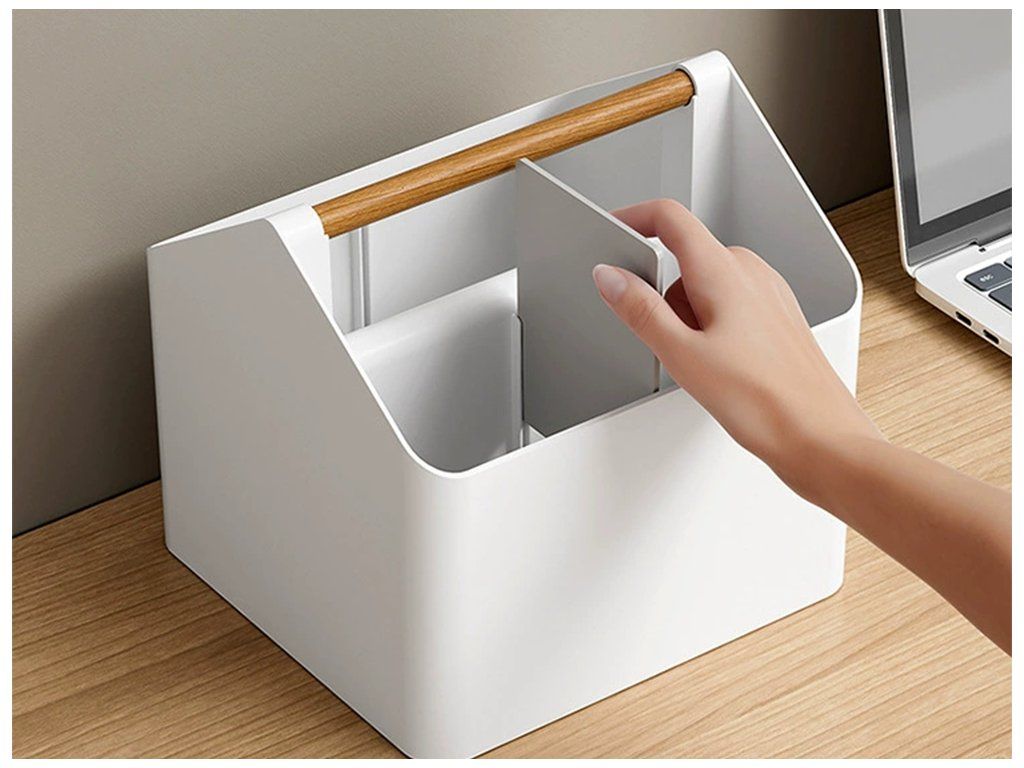 ✅ Univerzální design s dřevěným držadlem pro přenášení činí z organizéru skvělého pomocníka jak v kanceláři, tak v studentském pokoji nebo na toaletním stolku, přizpůsobí se vašim potřebám.
