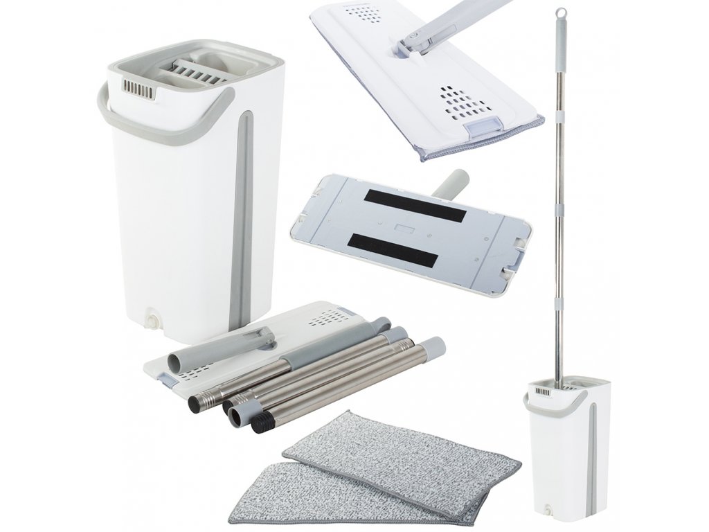 Plochý mop s dvoukomorovým ždímacím kbelíkem