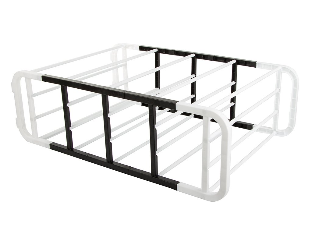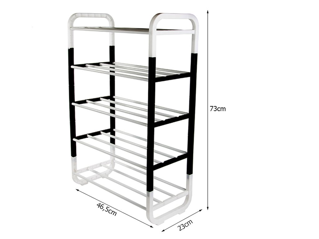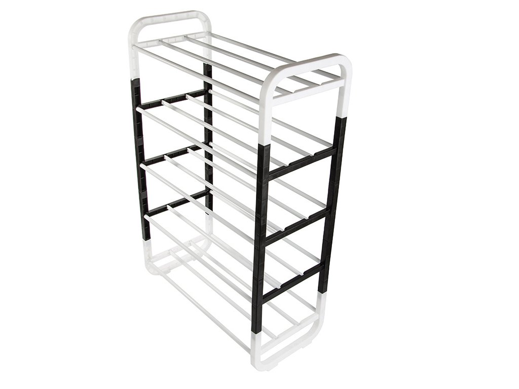 Tento víceúčelový regál na boty se skládá z pěti úrovní a pojme až 10 párů bot nebo jiné praktické předměty. Díky své konstrukci se regál velmi snadno montuje a sloupky a příčky jsou vyrobeny z hliníku. Jednotlivé úrovně regálu lze podle potřeby přidávat nebo odebírat, což zvyšuje jeho flexibilitu a použitelnost. Regál má navíc velmi estetický design, který zapadne do vzhledu každého bytu.