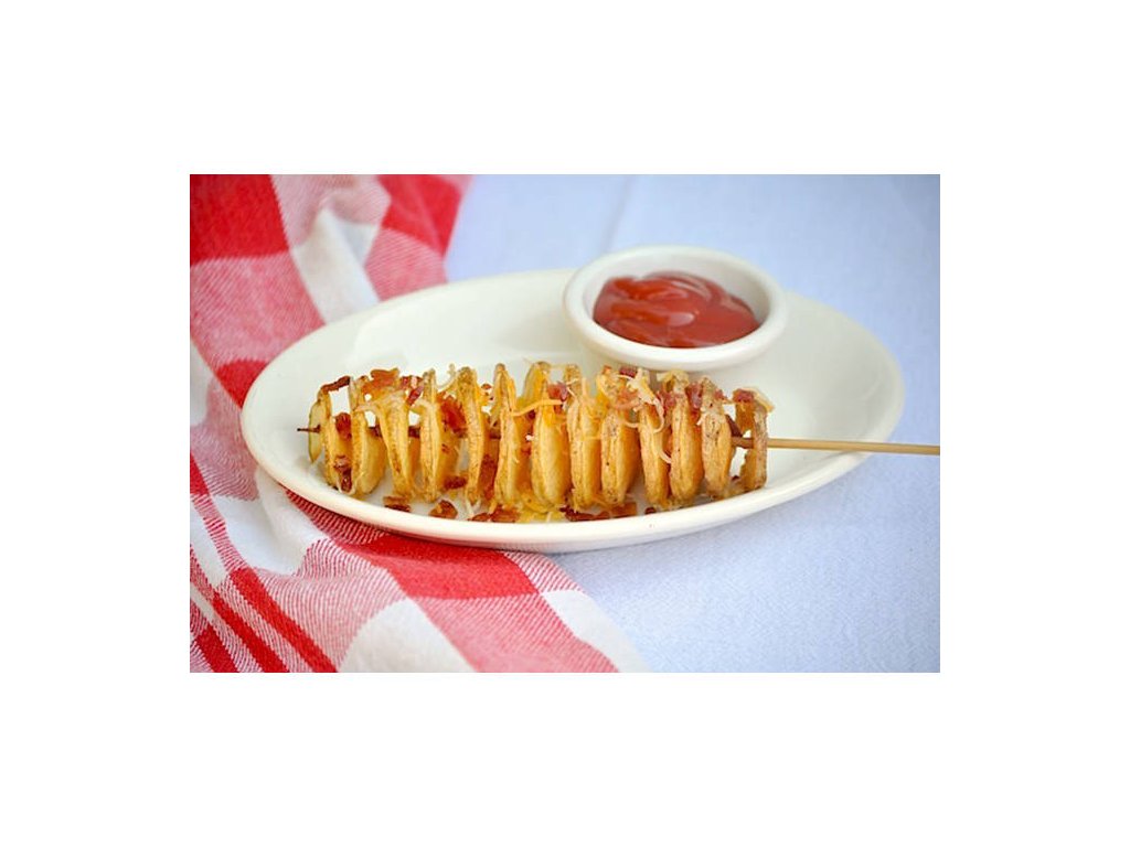 RUČNÍ STROJEK NA KRÁJENÍ ZAKROUCENÝCH HRANEK Z BRAMBOR