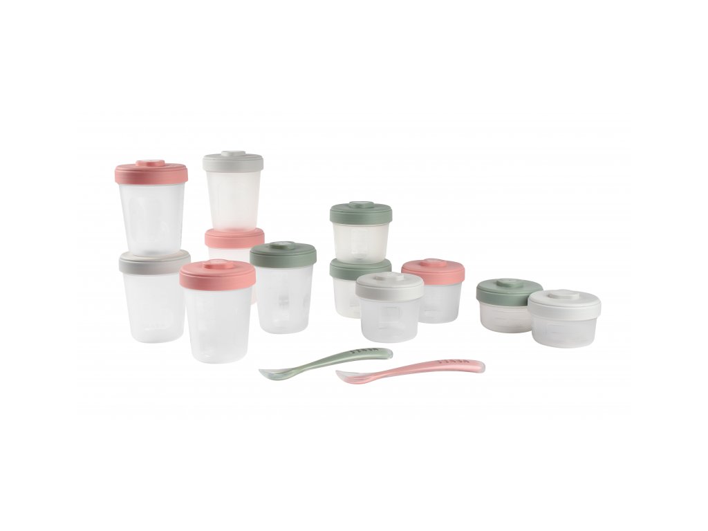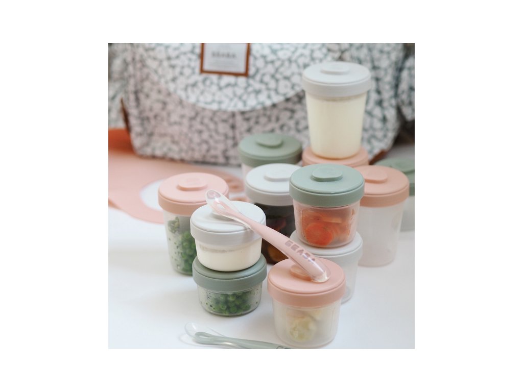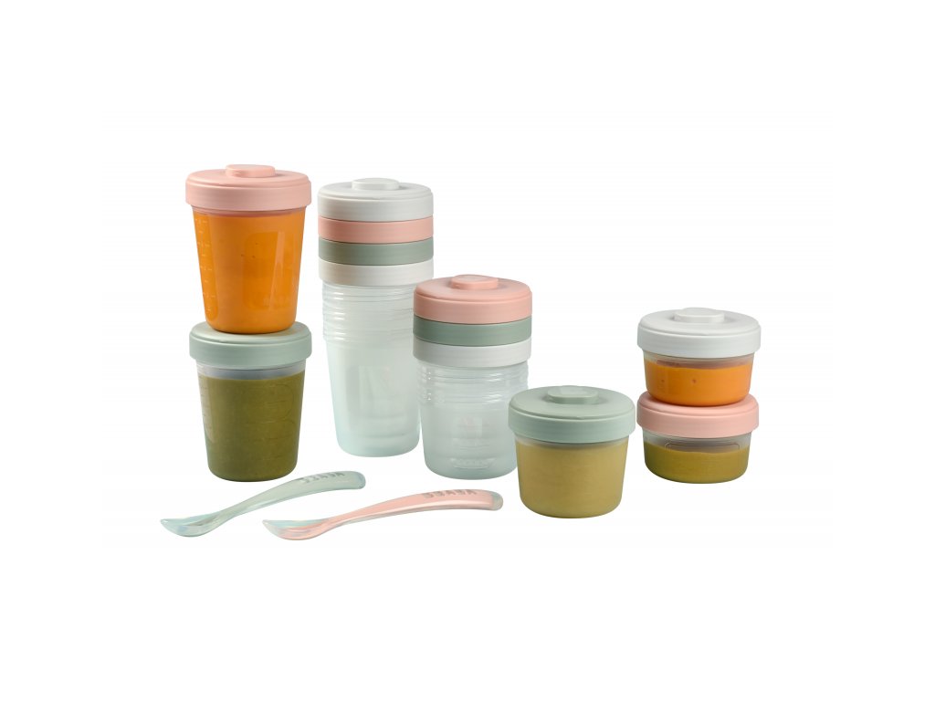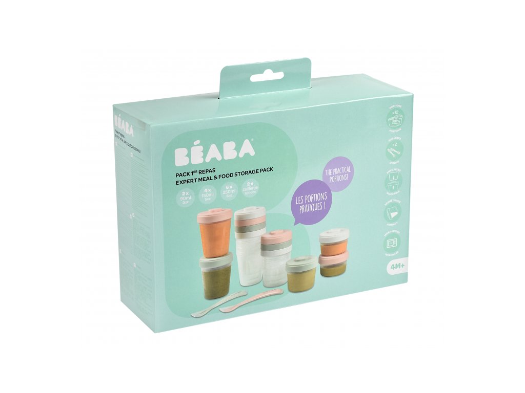 Sada kelímků Beaba na dětskou stravu z vysoce kvalitního polypropylenu s hermeticky uzavíratelným víčkem. Jídlo v kelímcích lze zamrazit či uložit do lednice a následně ohřívat v mikrovlnné troubě, ohřívačce nebo v Babycooku. Speciálně navržené víčko a dno kelímku umožňuje kelímky na sebe zacvaknout, což usnadňuje jejich uložení do lednice či mrazáku. Kelímky se dají popsat pro rychlou orientaci v lednici či mrazáku. Ryska v mililitrech slouží ke pro snadnému určení objemu příkrmu. Silikonové lžičky pro první samostatné krmení mají ideální tvar pro dětská ústa. Tvar držadla usnadňuje dítěti držení lžičky. Lžička má na spodní straně rukojeti opěrku pro možnost hygienického odložení lžičky na stůl. Možno mýt v myčce. Zdravotně nezávadný materiál neobsahuje BPA, BPF, BPS, PVC ani ftaláty a je tak vhodný pro bezpečné uchovávání dětské stravy. Balení obsahuje 2x kelímek o objemu 90 ml, 4x kelímek o objemu 150 ml, 6x kelímek o objemu 250 ml a 2 silikonové lžičky.