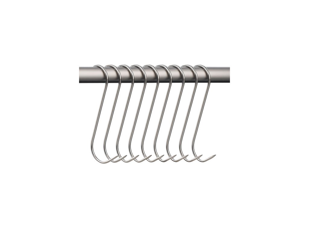 Praktický tvar S Speciální tvar háků umožňuje snadné zavěšení masa, ryb nebo jiných potravin do udírny. Háky jsou navrženy tak, aby pevně držely a minimalizovaly riziko sklouznutí.