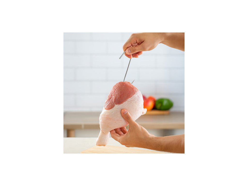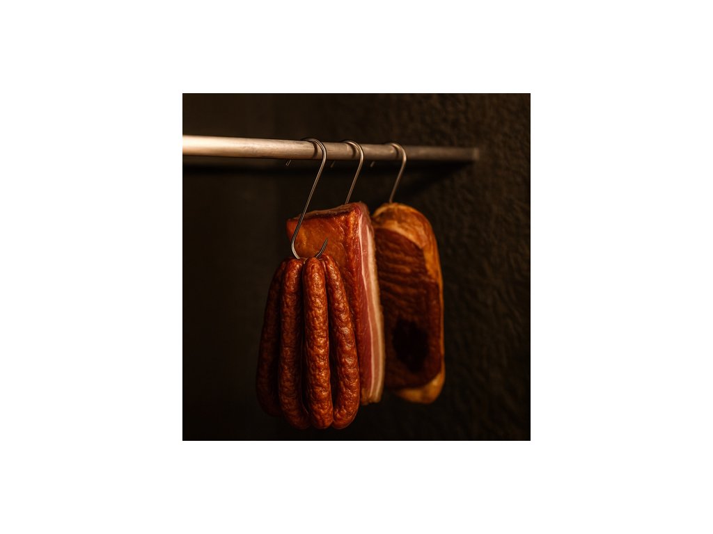 Nerezová ocel zajišťuje nejen dlouhou životnost háků, ale také hygienické podmínky při manipulaci s potravinami. Háky jsou odolné vůči vysokým teplotám a vlhkosti, což je při uzení klíčové.