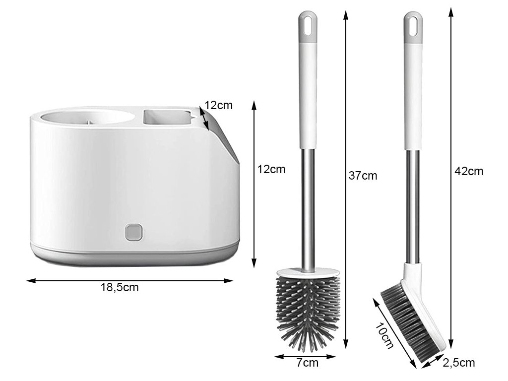 Set se skládá ze dvou vysoce kvalitních toaletních štětek a nádoby na vodu. Na rozdíl od tradiční toaletní štětky se silikonové štětiny příliš nelepí, což zajišťuje efektivní údržbu toalety.