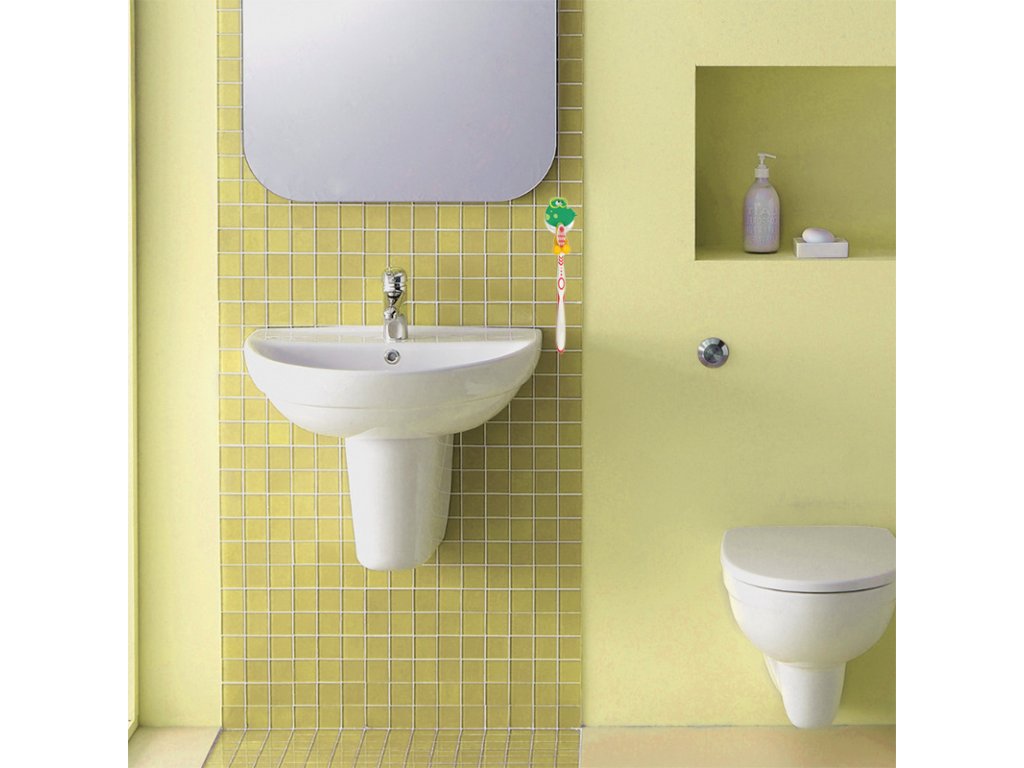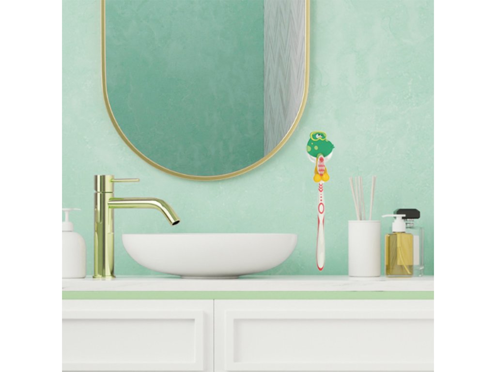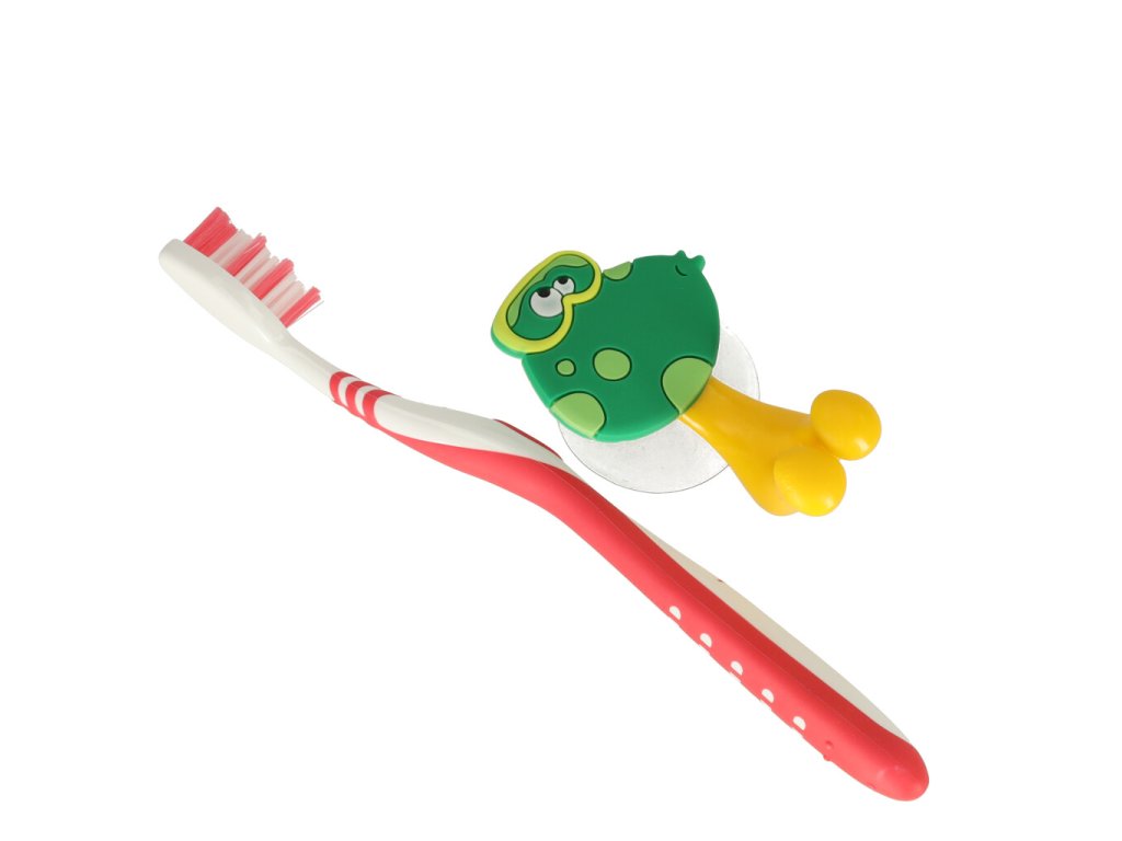 Praktický design Tento držák zubních kartáčků se vyznačuje vtipným designem, který upoutá pozornost. Pomůže vám přesvědčit vaše dítě o správné ústní hygieně, a to zábavnou formou. Hygienické řešení - Držák umožňuje zubním kartáčkům volně schnout. - Omezí kontakt se zubními kartáčky ostatních členů domácnosti, což přispívá k lepší hygieně. Snadné umístění Díky přísavce je instalace tohoto držáku velmi jednoduchá. Můžete ho snadno umístit na různé povrchy a také měnit místo, kde držák visí. Kompatibilní povrchy - Skleněné povrchy - Hladké plastové a ocelové povrchy - Dlaždice Díky těmto vlastnostem je náš samolepicí držák zubních kartáčků ideálním řešením pro každou domácnost.