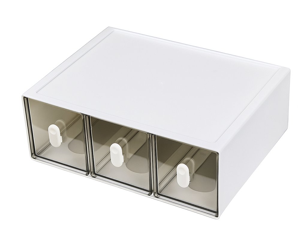 Multifunkční organizér se třemi zásuvkami se skvěle hodí všude tam, kde záleží na pořádku a čistotě. Ideální do kuchyně, koupelny, dětského pokoje i na stůl – hodí se do každého interiéru. Elegantní vzhled, kompaktní rozměry a funkční konstrukce tvoří kombinaci, která změní každodenní organizování drobností. Díky tomuto produktu má vše své místo.