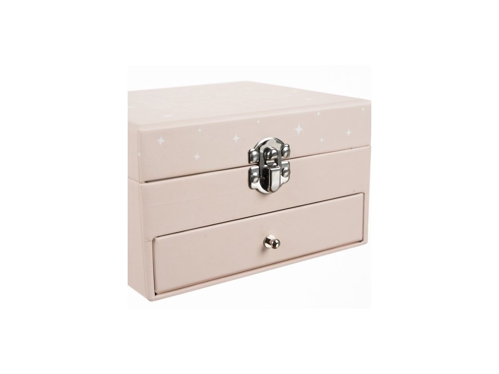 Úložiště pro všechny vaše šperky! Tato praktická schránka nabízí různě velké přihrádky pro prsteny, řetízky, náušnice a další klenoty. Vnitřní zrcadlo, háčky na řetízky a kapsa...