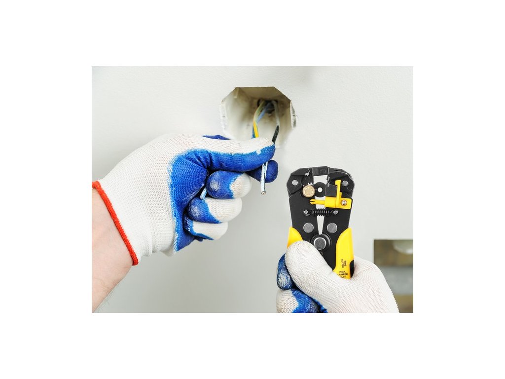 - Odstranění izolace: Vložte kabel do čelistí tak, aby rovnoměrně přilnul k nástroji, a poté stiskněte rukojeť.