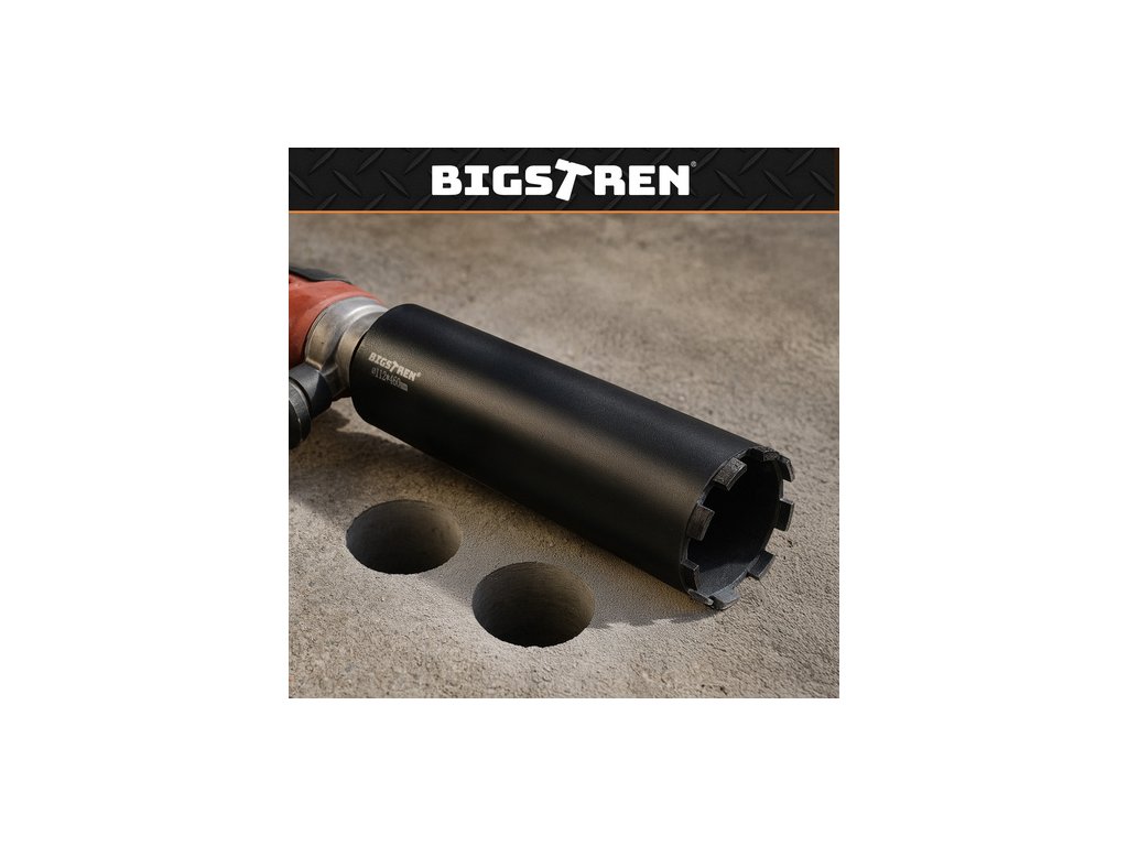 Profesionální diamantový jádrový vrták Bigstreen umožňuje rychlé a přesné vrtání do betonu, asfaltu, železobetonu a dalších mimořádně tvrdých materiálů. Diamantové segmenty zajišťují čisté hrany, vysokou odolnost a stabilní provoz i po delším používání. Je to spolehlivé řešení pro vrtání velkých průměrů v dílnách a na staveništích.