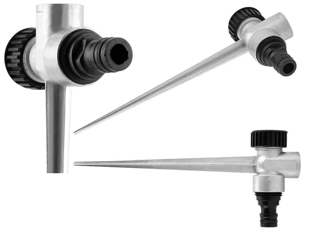 - Snadné použití - instalace trvá sekundy; stačí zapíchnout kolík do země a připojit k hadici.