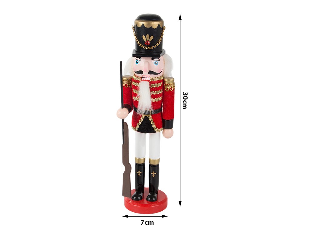 Figurka Louskáček je vyrobena s důrazem na detail, což se odráží v jejím nádherném designu. Louskáček je oblečen do stylového červeného kabátku, který je symbolem tradičního vánočního oblečení. Každý detail, od ladně vypracovaných rysů obličeje po precizně nazdobený kabátek, svědčí o pečlivém zpracování a vysoké kvalitě výroby.