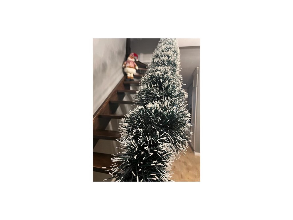 Zelený řetěz s bílými konci při osvětlení vánočními světýlky vytvoří hypnotizující a magickou atmosféru. Světlo odrážející se od lesklého jehličí girlandy zvýrazní záři a prohřeje atmosféru každé místnosti. Dvoubarevný řetízek bude skvělým doplňkem, který do vánočního období vnese smysl pro tradici a kouzlo.