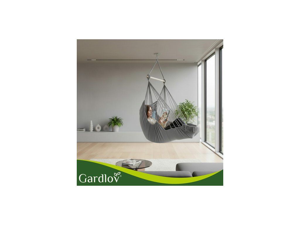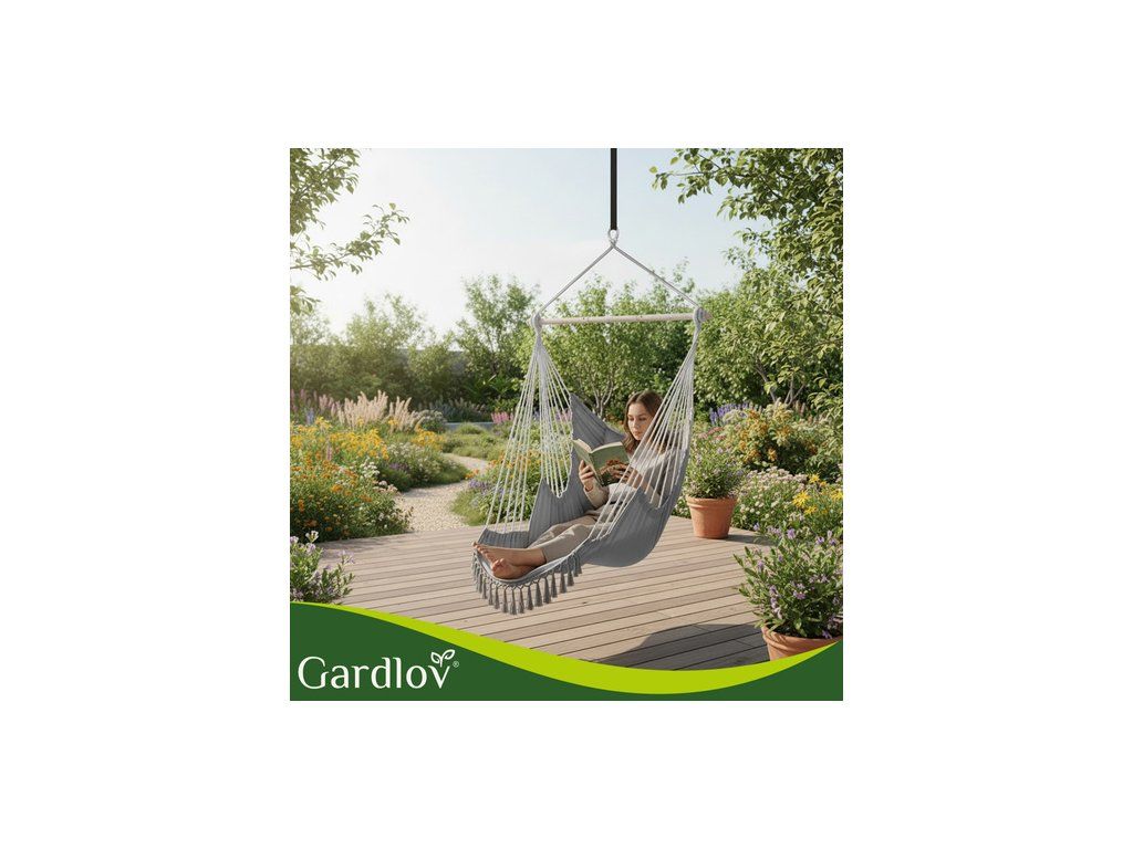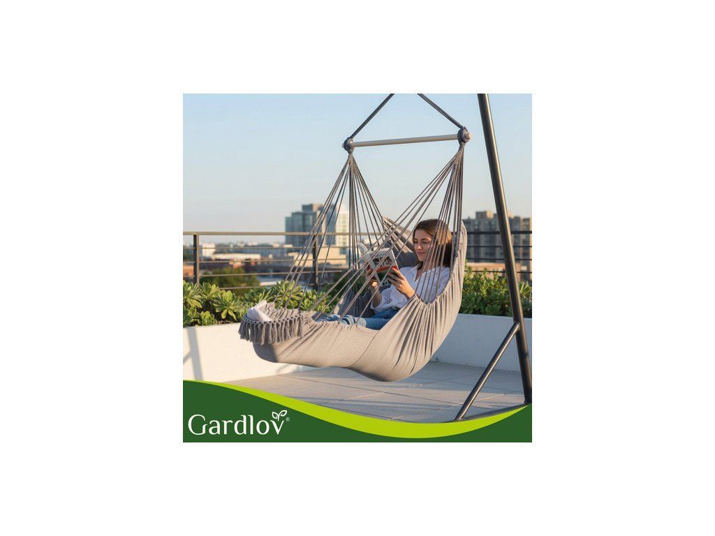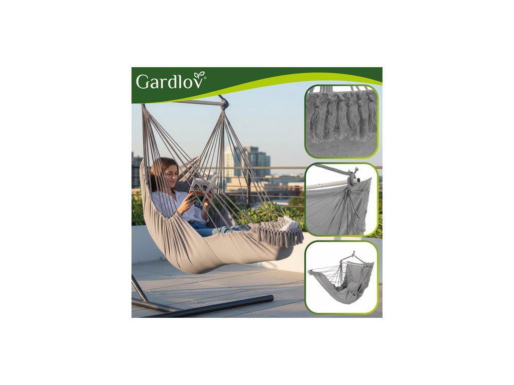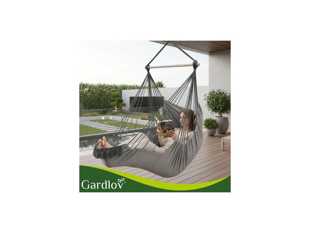 Brazilské závěsné křeslo Gardlov je velké a pohodlné Houpací síť na zahradu a balkon, která během chvilky promění obyčejný kout v útulnou relaxační zónu . Obklopující, pevná bavlněná látka, dva měkké polštáře a stabilní kovová tyč zajišťují pohodlí a bezpečnost. ideální místo k odpočinku po práci, čtení knihy nebo k chvilce odpočinku na zahradě, terase nebo v obývacím pokoji .