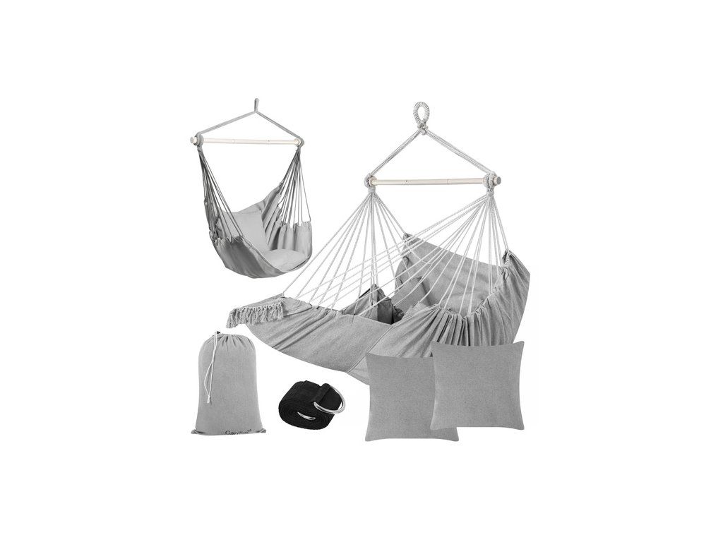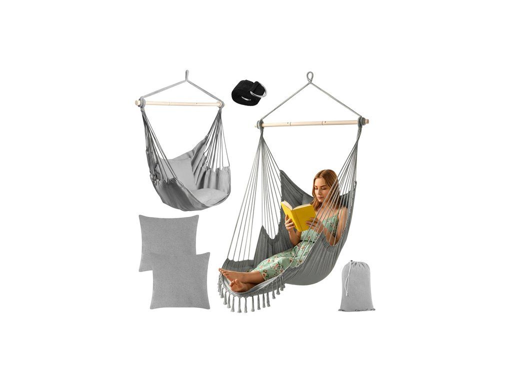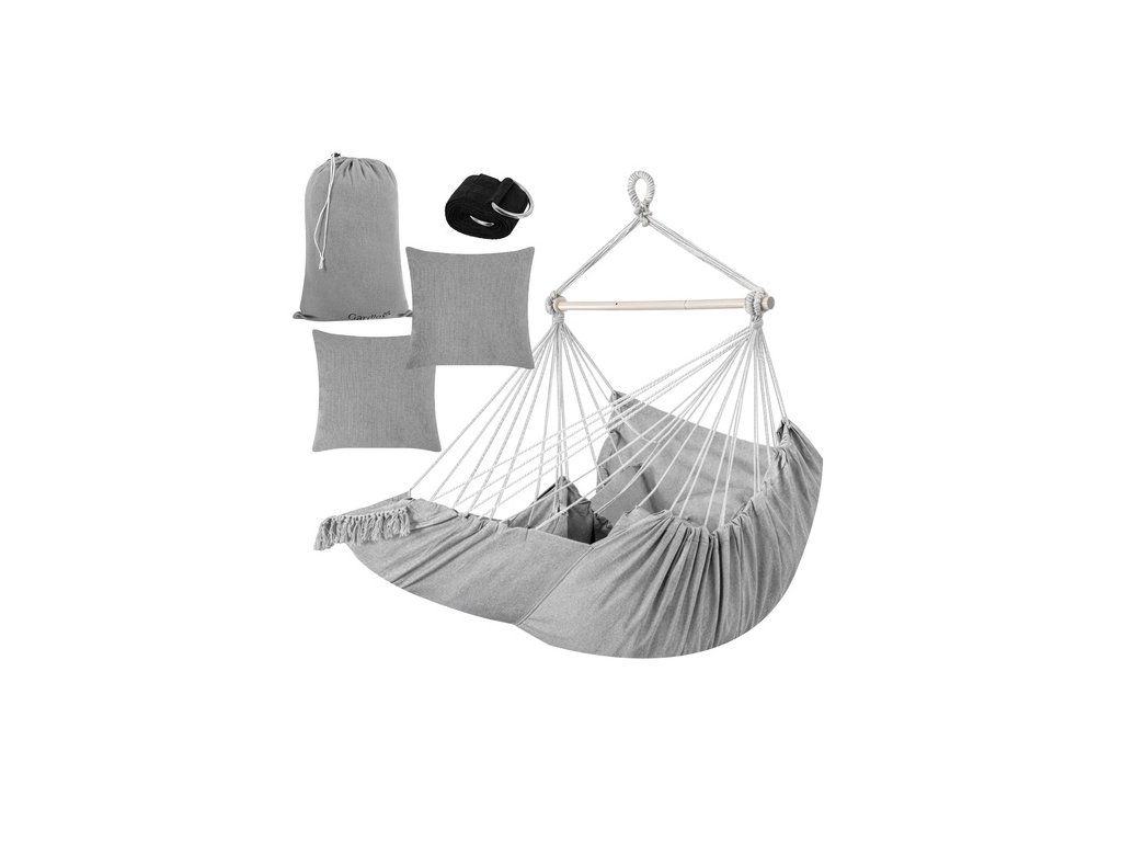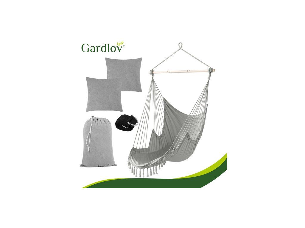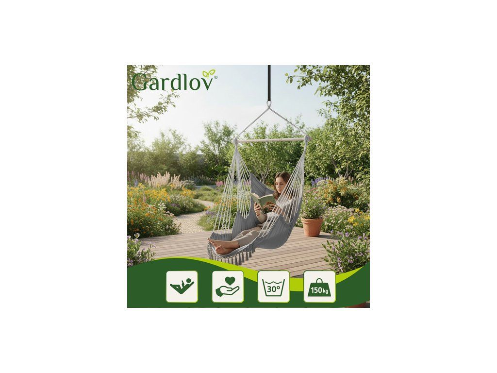 Brazilské závěsné křeslo Gardlov je velké a pohodlné Houpací síť na zahradu a balkon, která během chvilky promění obyčejný kout v útulnou relaxační zónu . Obklopující, pevná bavlněná látka, dva měkké polštáře a stabilní kovová tyč zajišťují pohodlí a bezpečnost. ideální místo k odpočinku po práci, čtení knihy nebo k chvilce odpočinku na zahradě, terase nebo v obývacím pokoji .
