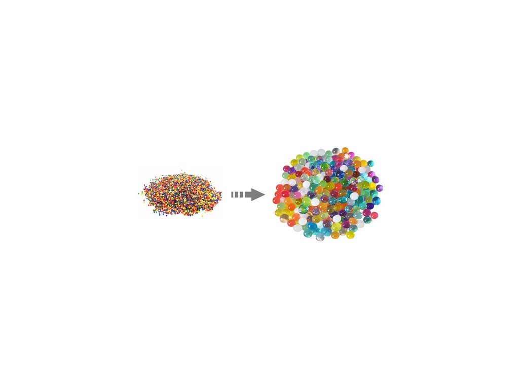 Absorpční schopnosti Hydrogelové kuličky dokážou absorbovat velké množství vody, čímž zvětší svůj objem a získají atraktivní gelovou strukturu.