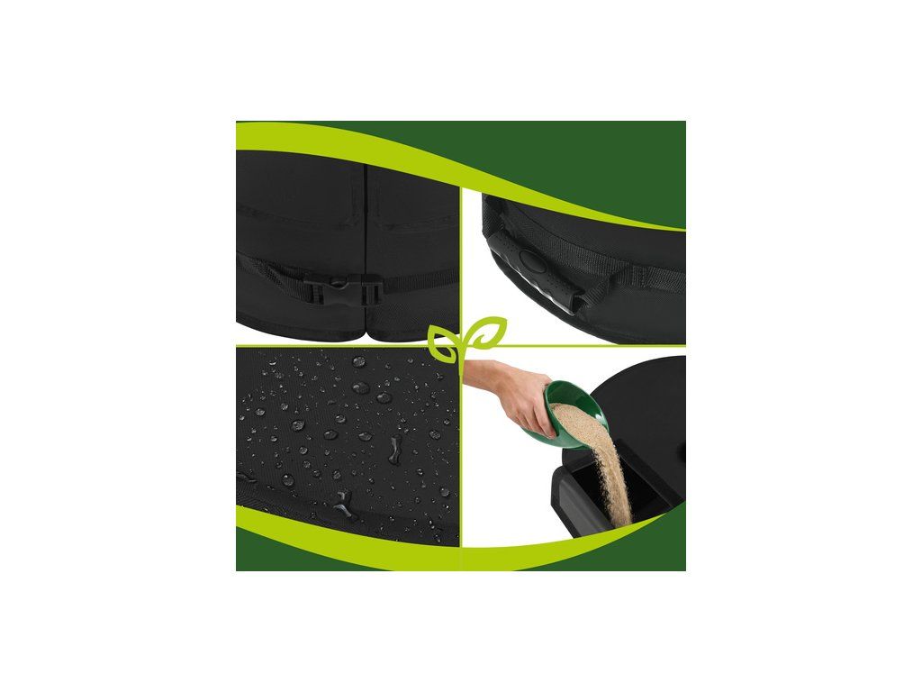 Vítr vám může efektivně zkazit zahradničení – vratký slunečník znamená stres a riziko poškození. Tato Gardlova základna Po naplnění pískem se základna zatíží až o 40 kg, aby deštník zůstal stabilní a bezpečně upevněný na jednom místě.