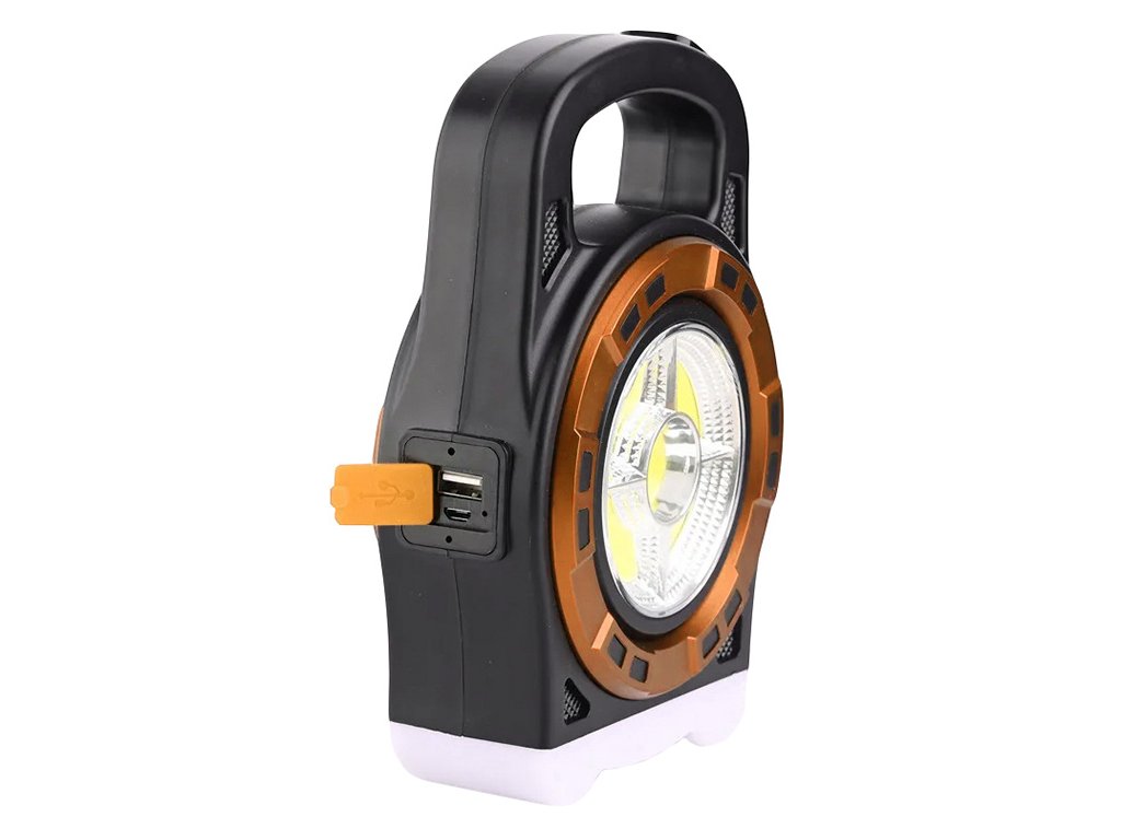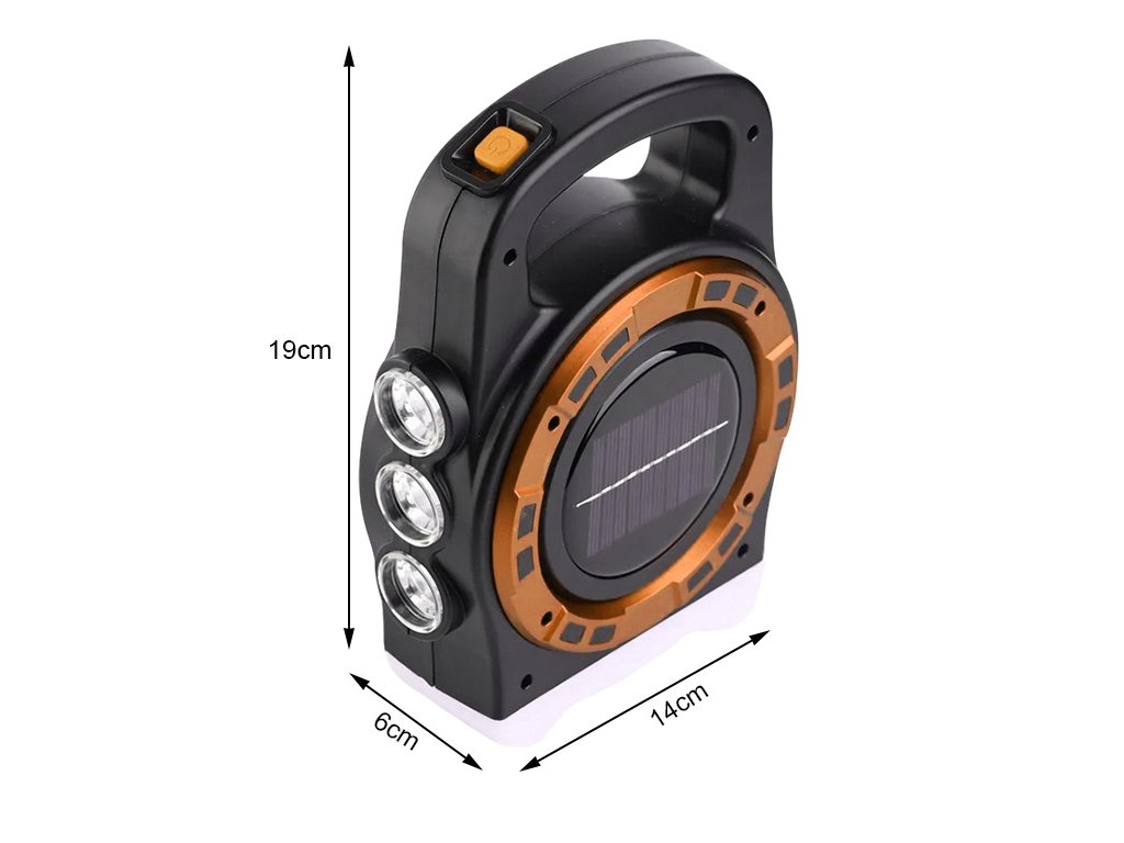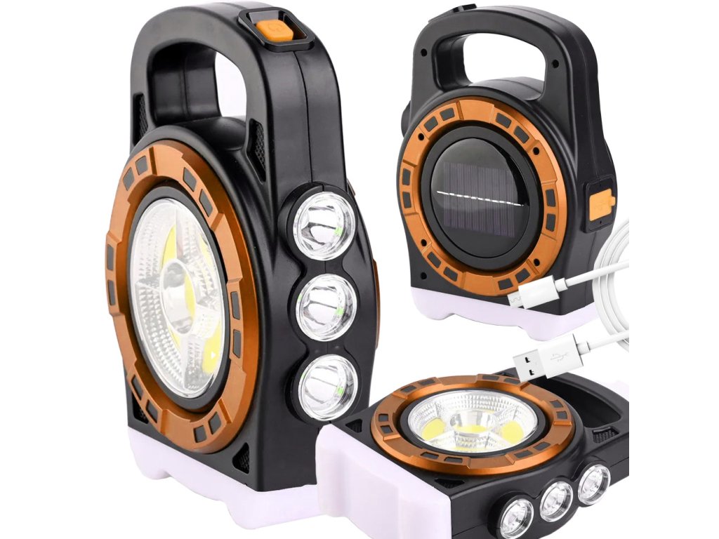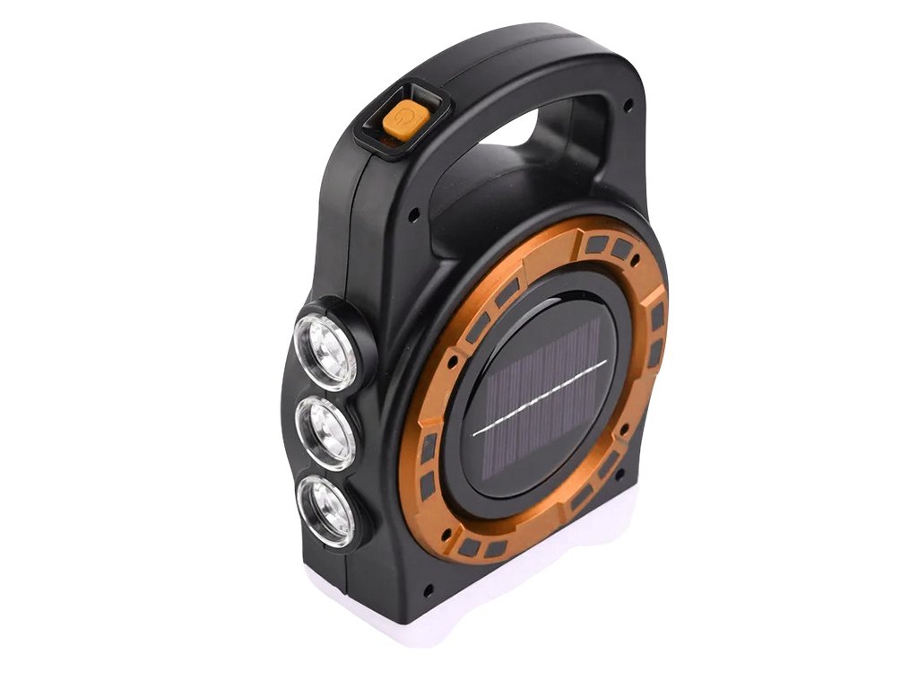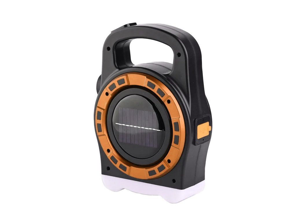 Přenosná solární LED lampa s dobíjecí powerbankou a reflektorem HB-6678C - zlatá