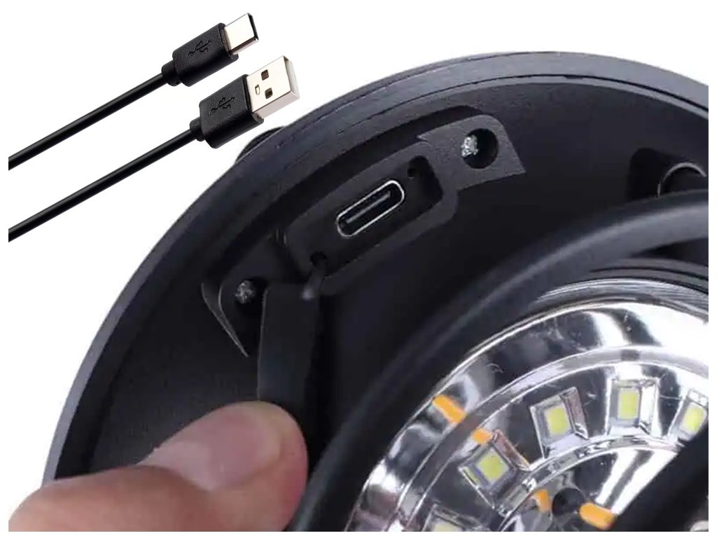 Alternativně lze lucernu nabíjet připojením kabelu USB.