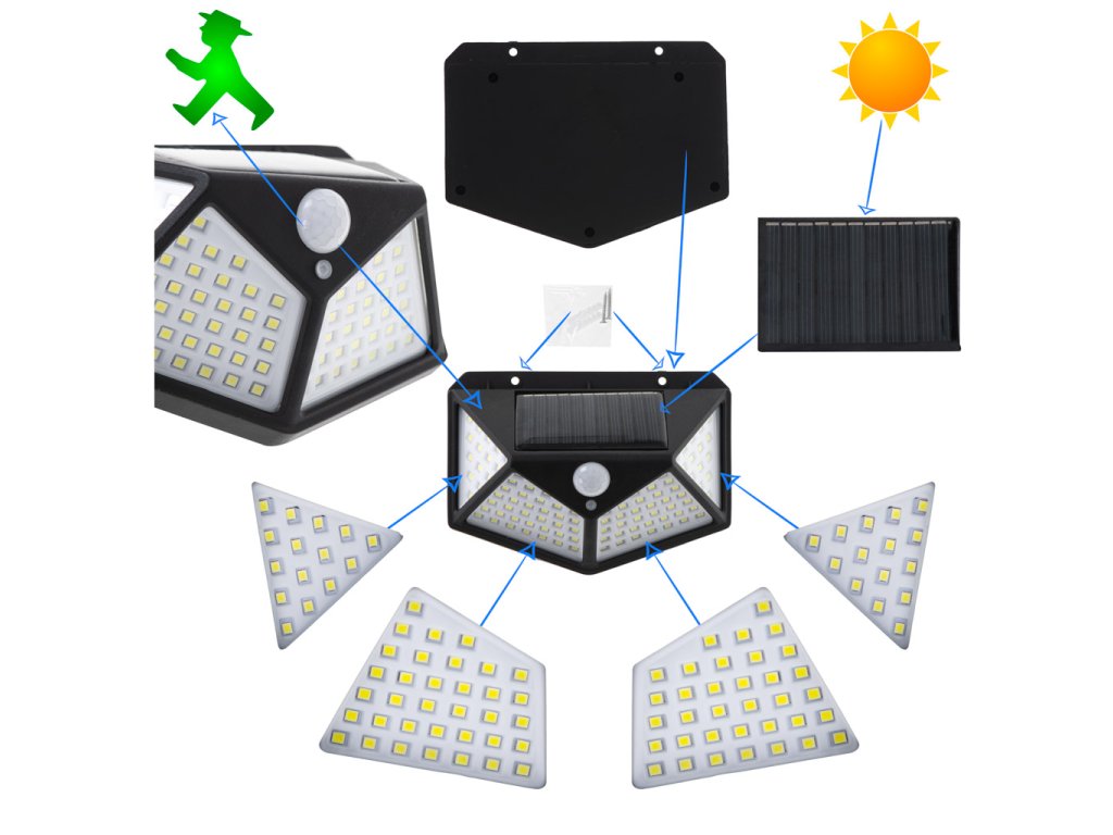 Solární lampa se senzorem pohybu a soumraku 100 LED