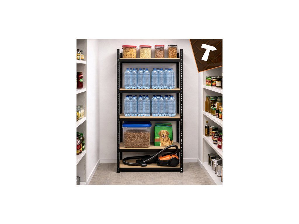 Ocelový úložný regál 180x90x40 cm Bigstreen černý vyztužený 5 MDF polic