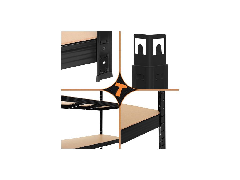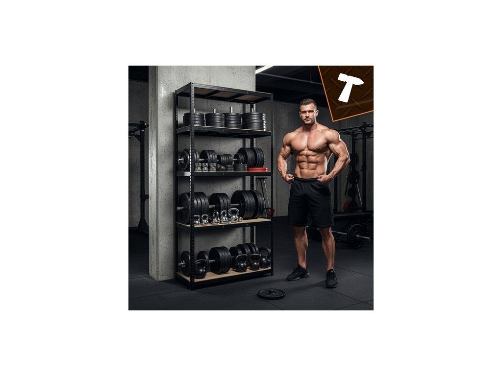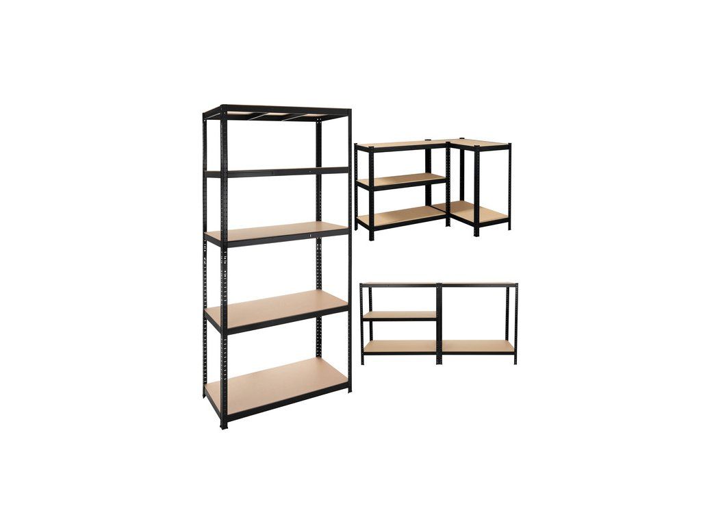Výkonný ocelový úložný regál 220x100x45 cm Bigstreen černý, dvojitě vyztužený, 5 MDF polic