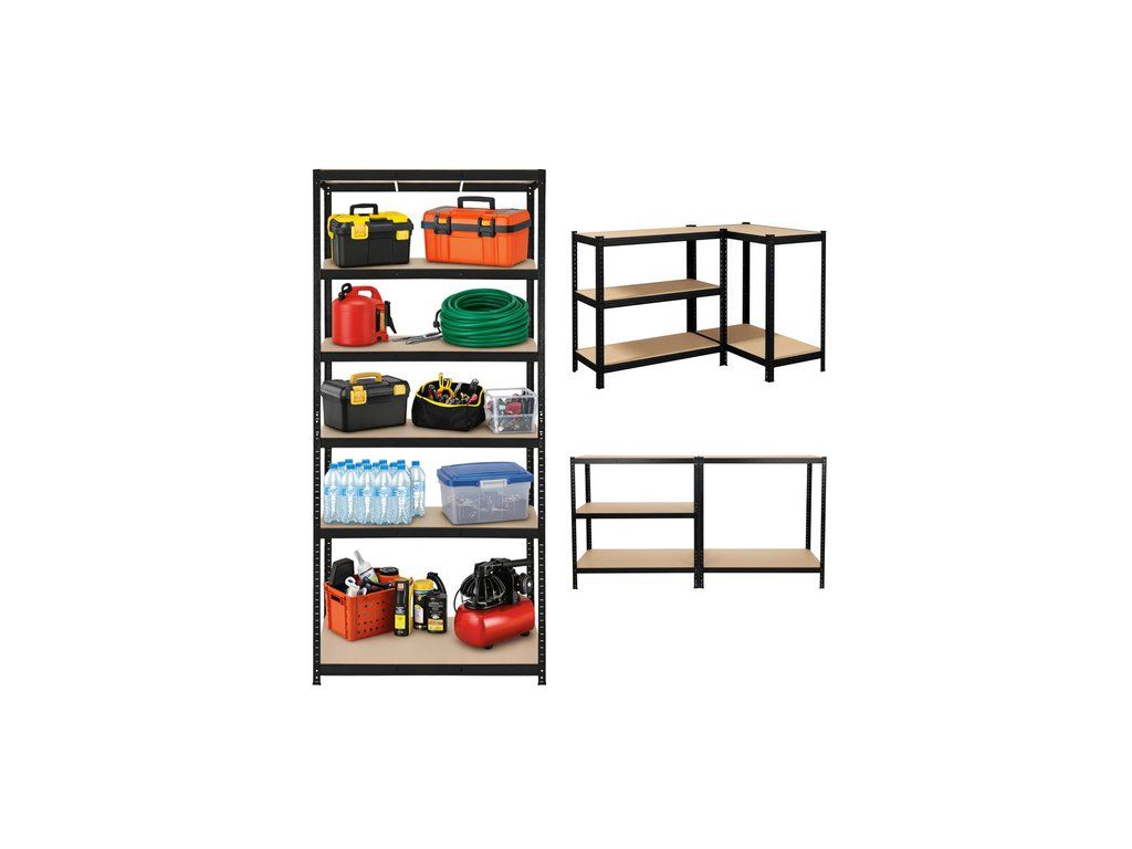 Kovový regál s 5 policemi, černý, do garáže nebo sklepa, 220x100cm, nosnost 1000kg