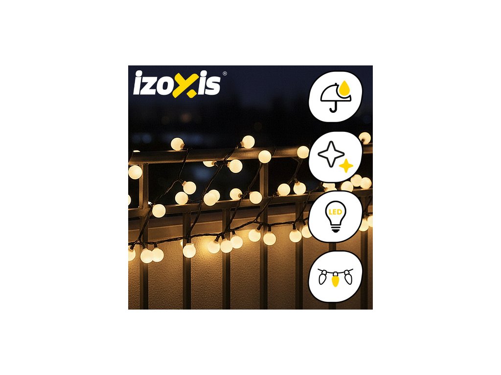S 300 teple bílými LED diodami a délkou 30 metrů vytvoří tato světla IZOXIS jedinečnou, zářivou atmosféru – ať už ve vašem obývacím pokoji, na balkoně, terase nebo fasádě. Osm režimů osvětlení, včetně efektu záblesku, vám umožní přizpůsobit světlo vaší náladě – od jemného blikání až po skutečnou slavnostní hostinu!
