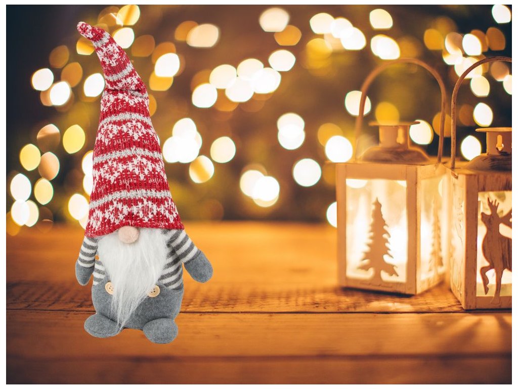 Vánoční skřítek- šedý 38 cm HYS20874A
