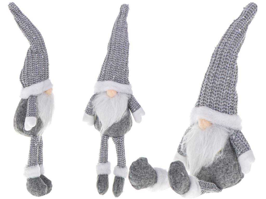 Vánoční trpaslík s vousy šedý 47cm