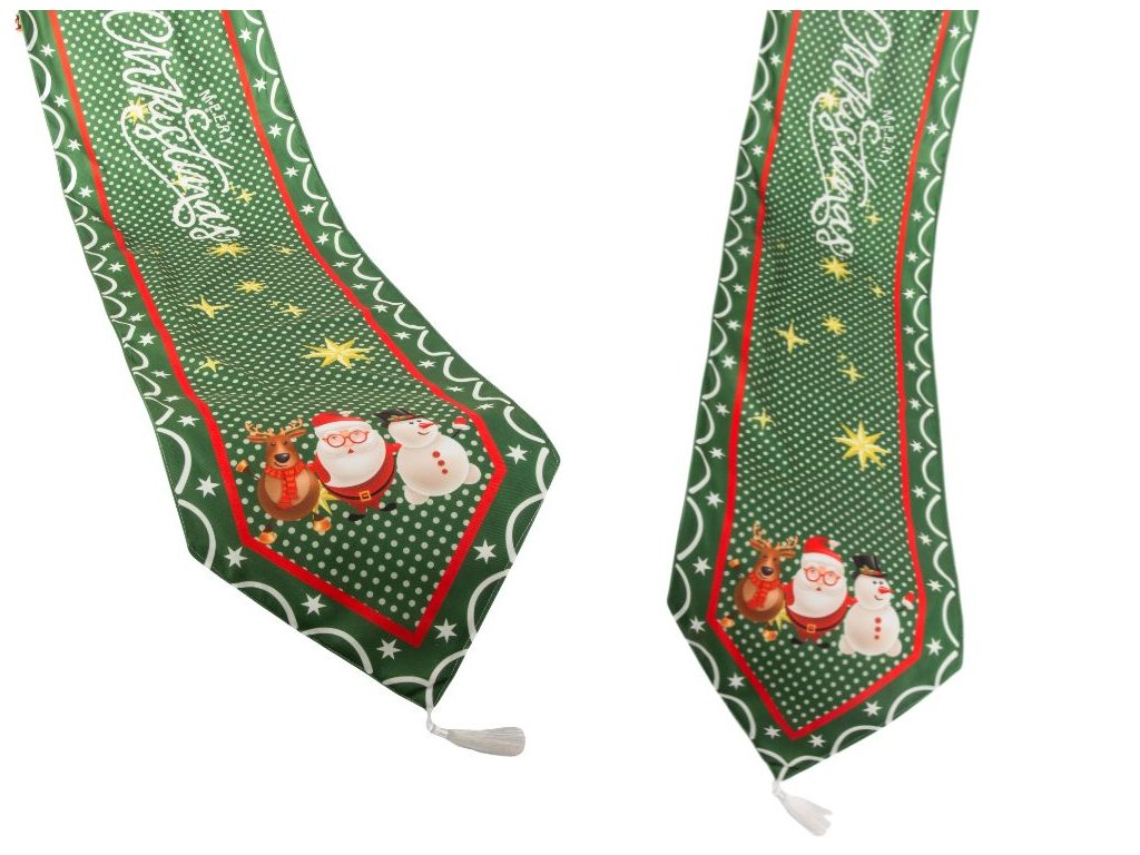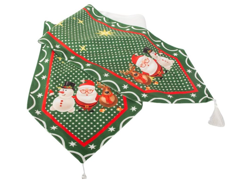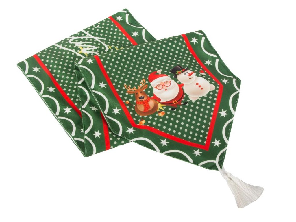 Zelený běhoun na stůl s vánočním motivem 205 cm