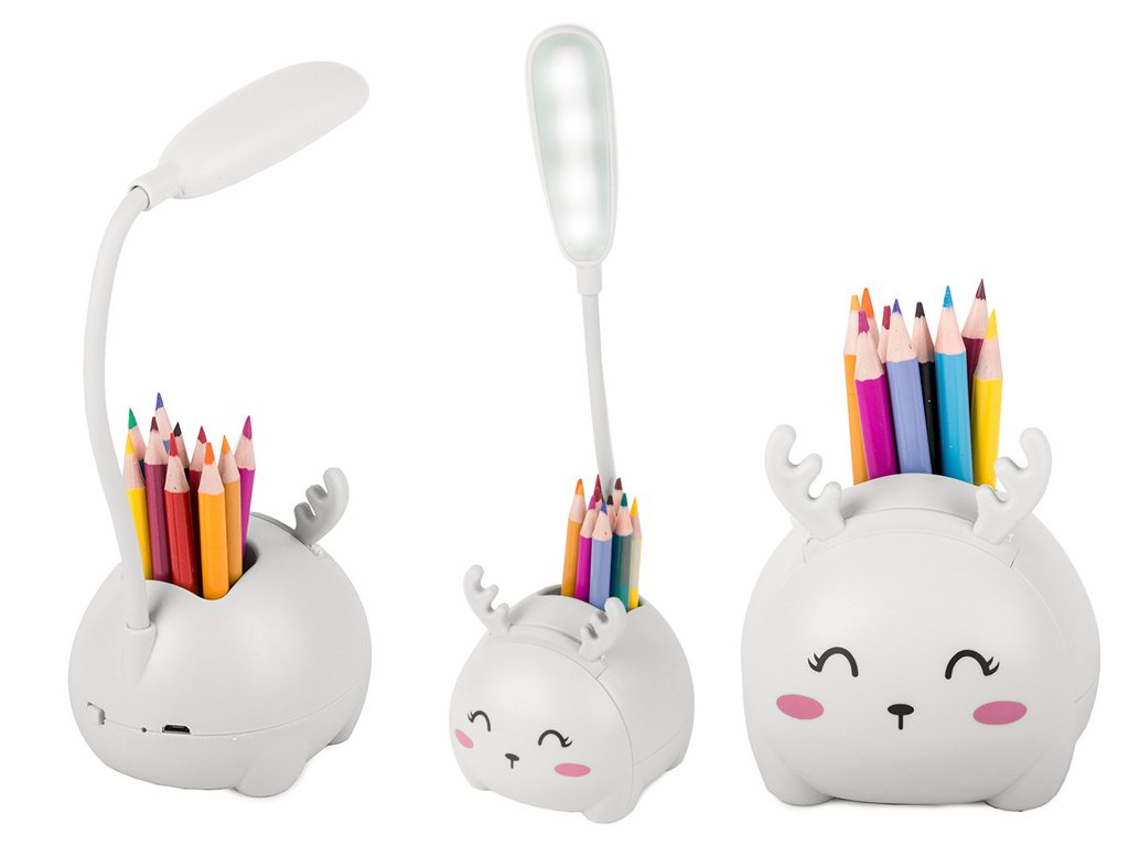 Roztomilá noční lampa ve tvaru zvířátka je ideálním dárkem pro chlapce i dívky. Skvěle zapadne do každého dětského pokoje a vytvoří příjemnou a klidnou atmosféru. Lampa je vyrobena z pevného materiálu, který je příjemný na dotek a poslouží jako organizér pro psací potřeby i jako stojan na telefon.