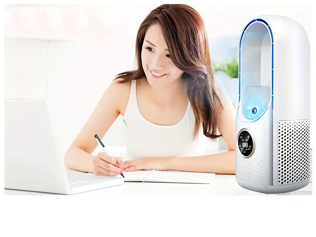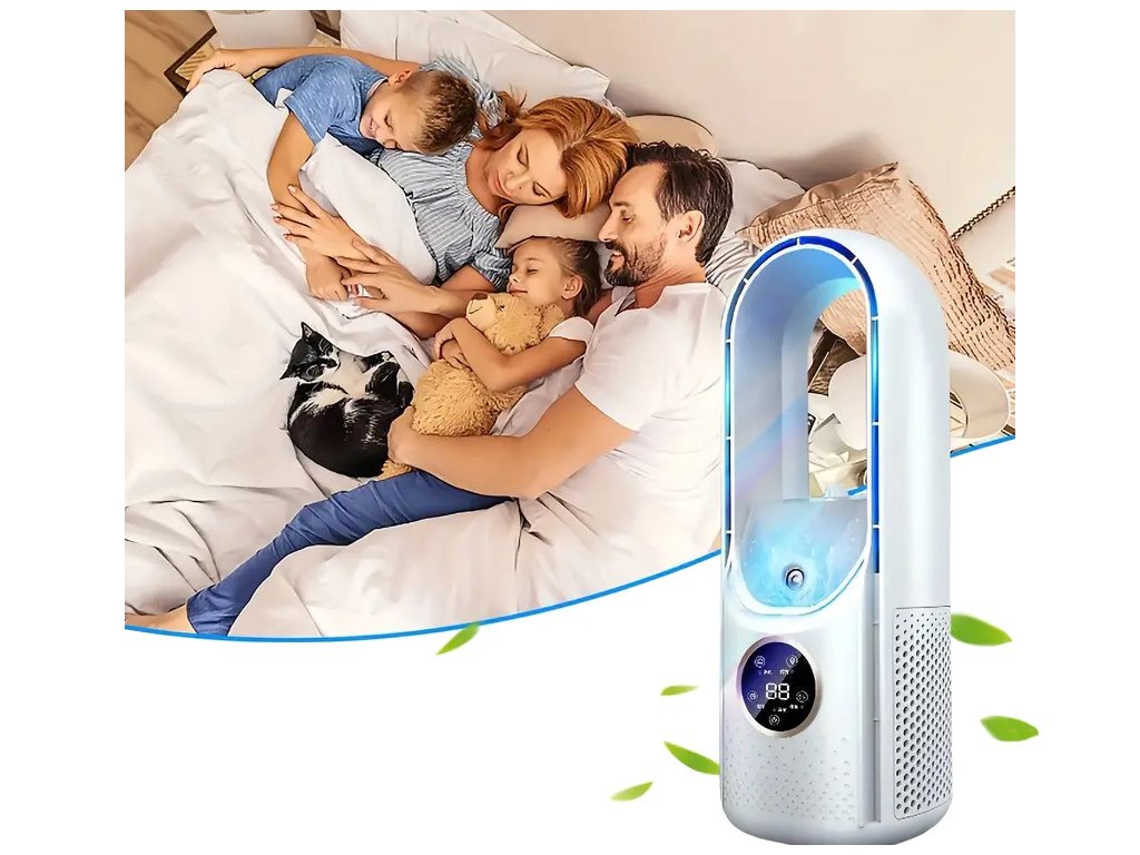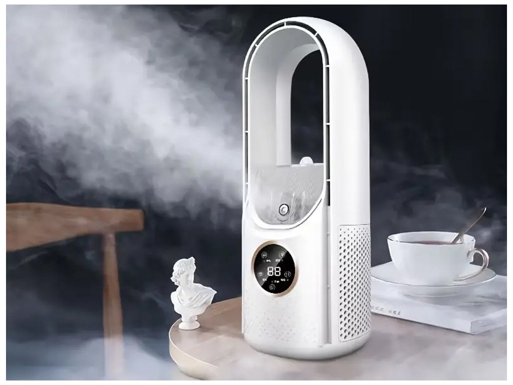 STOJANOVÝ VENTILÁTOR BEZ LOPATEK S TICHÝM ZVLHČOVAČEM VZDUCHU