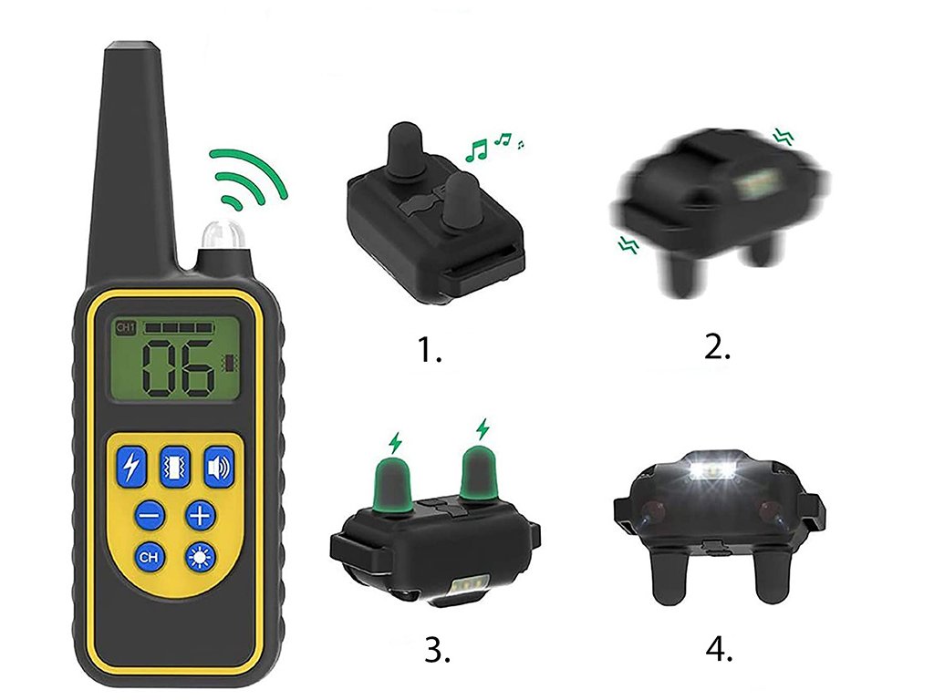 Můžete cvičit až 3 psy s jedním dálkovým ovládáním. Pro výcvik více než jednoho zvířete stačí dokoupit další přijímač. Produkt je velmi snadno ovladatelný, takže proces připojení přijímačů k dálkovému ovládání je rychlý a jednoduchý. Díky vestavěné svítilně v dálkovém ovládání můžete svému mazlíčkovi označit místo, kam se má vrátit.