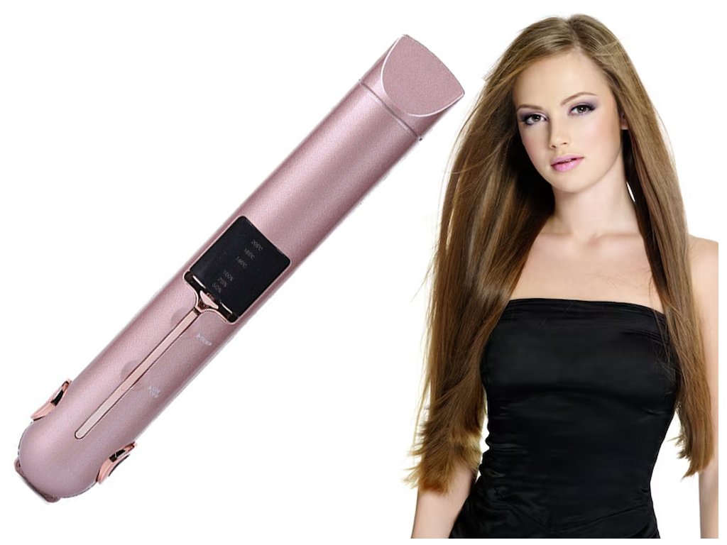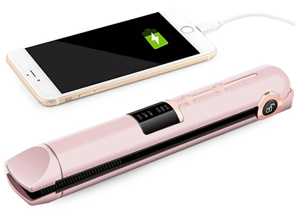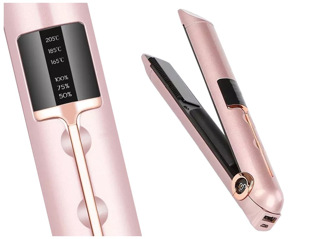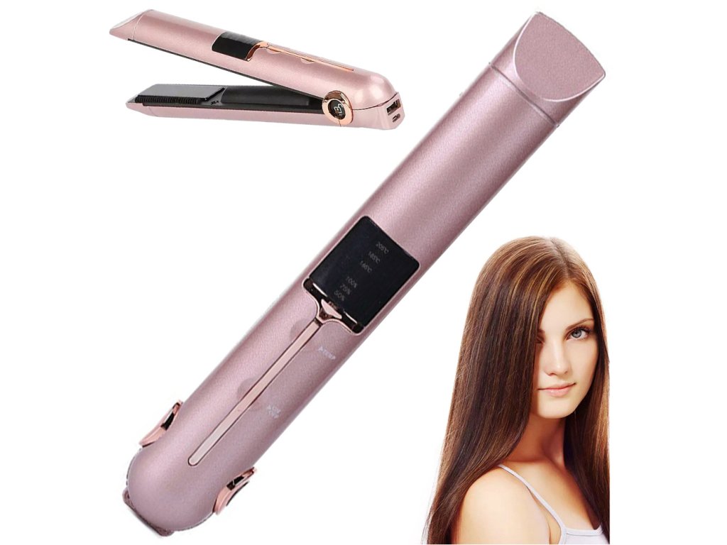 Popis produktu: Žehlička na vlasy je zařízení, se kterým si během pár okamžiků vytvoříte zajímavé účesy. Tento výrobek efektivně narovnává krepaté a kudrnaté prameny vlasů. Funkce: - Pomocí žehličky můžete také natáčet vlasy nebo vytvářet působivé vlny. - Je vhodná pro všechny typy vlasů. - Díky svému přenosnému a kompaktnímu designu je ideální pro úpravu vlasů na pódiu, na schůzce, na party nebo v práci. - Zařízení je bezdrátové a snadno si ho vezmete s sebou na cesty. Součást balení: - Pouzdro - USB nabíjecí kabel - Další funkcí je možnost využití žehličky jako nabíječky telefonu. Vlastnosti: - Keramické destičky vlasy nepoškozují. - Rychlé zahřívání. - Čtyřstupňové ovládání teploty v rozmezí od 75 do 205 stupňů. - Nižší teploty jsou určeny k úpravě jemných a barvených vlasů. - Pro zjištění správné teploty pro modelování se doporučuje postupné použití žehličky od nejnižší teploty po nejvyšší.Technické specifikace: