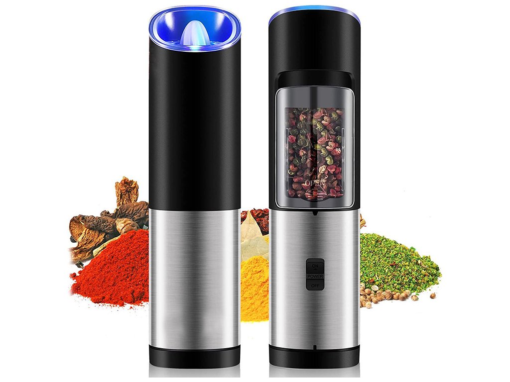 Sada elektrických mlýnků Ruhhy 25558 – stylové mlýnky na sůl a pepř s LED osvětlením a gravitačním ovládáním! Perfektní pomocník do každé moderní kuchyně.